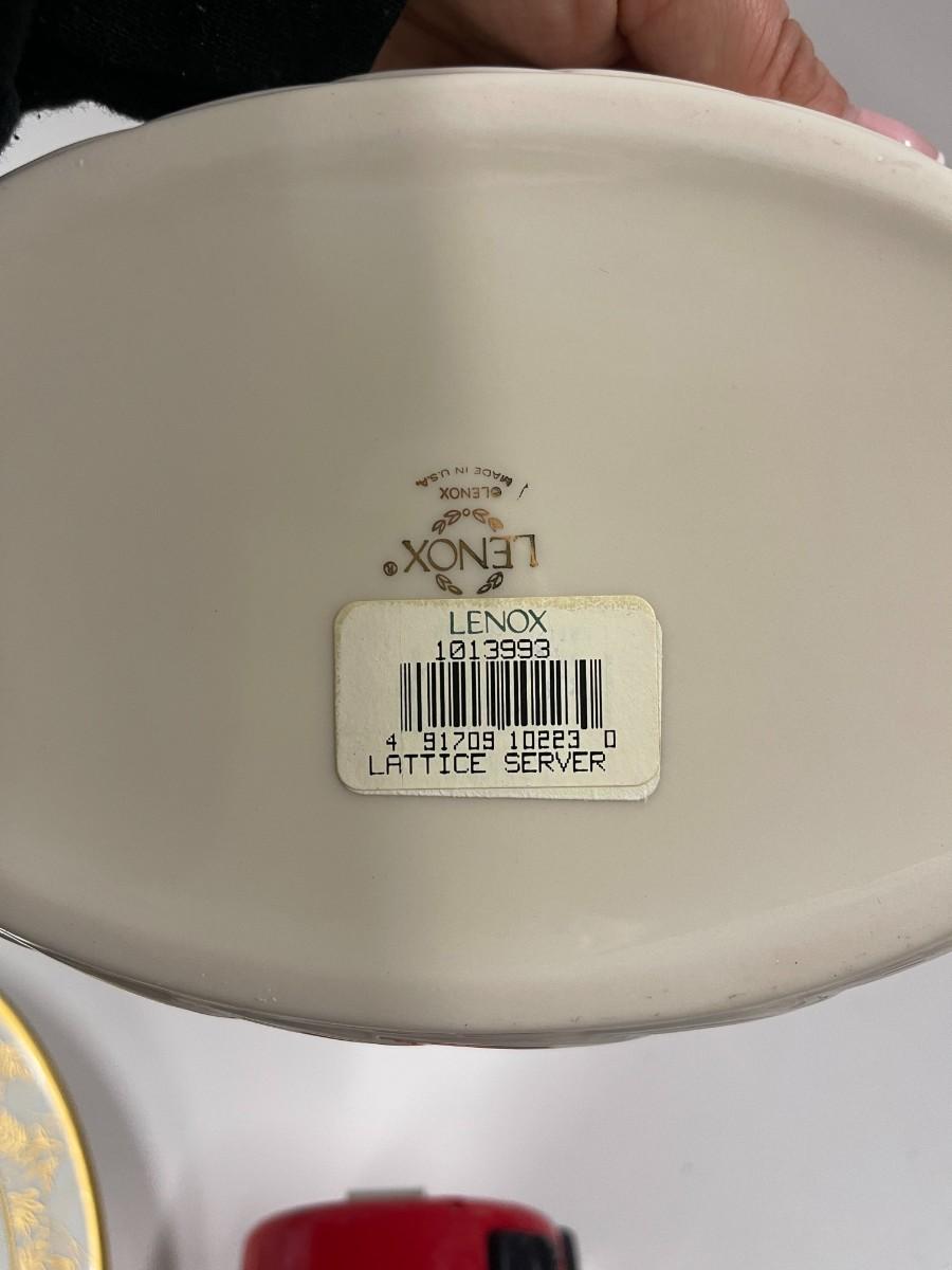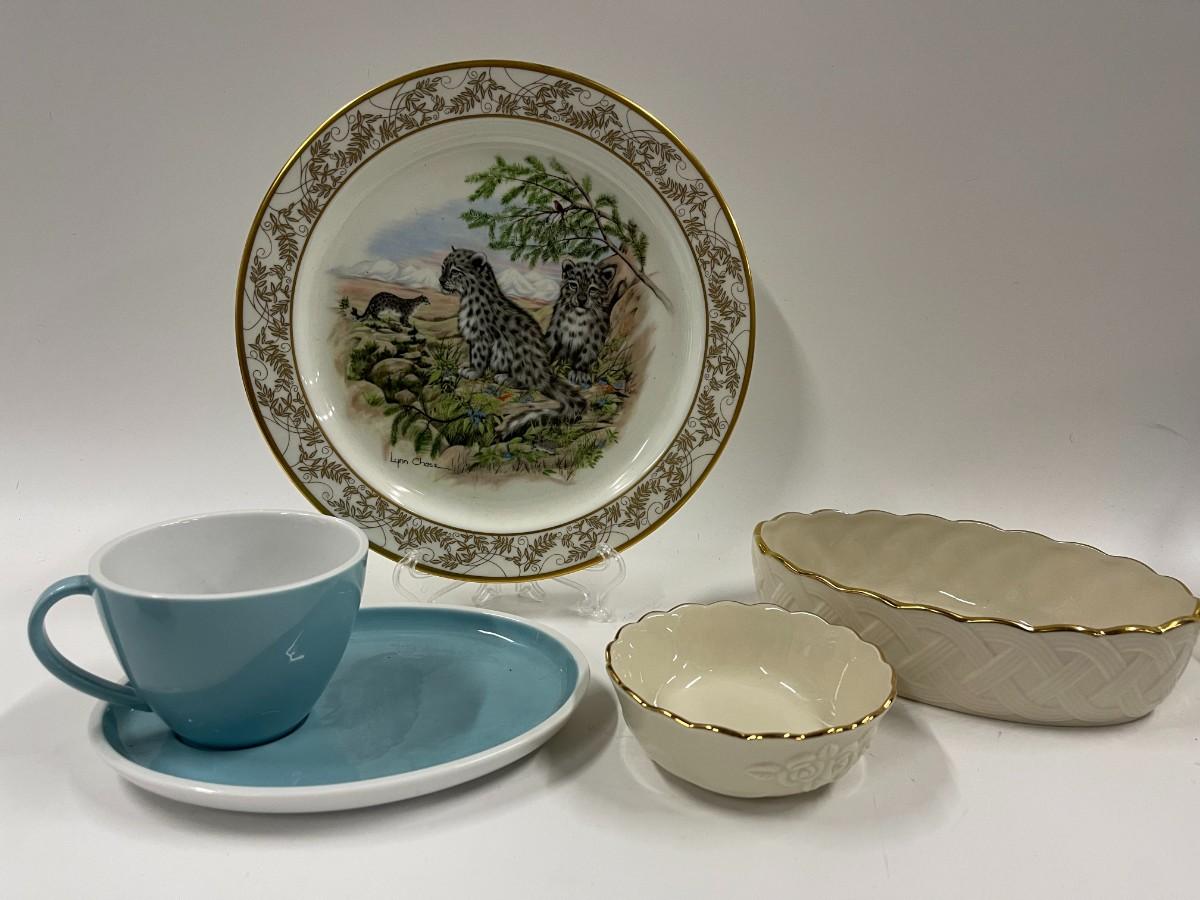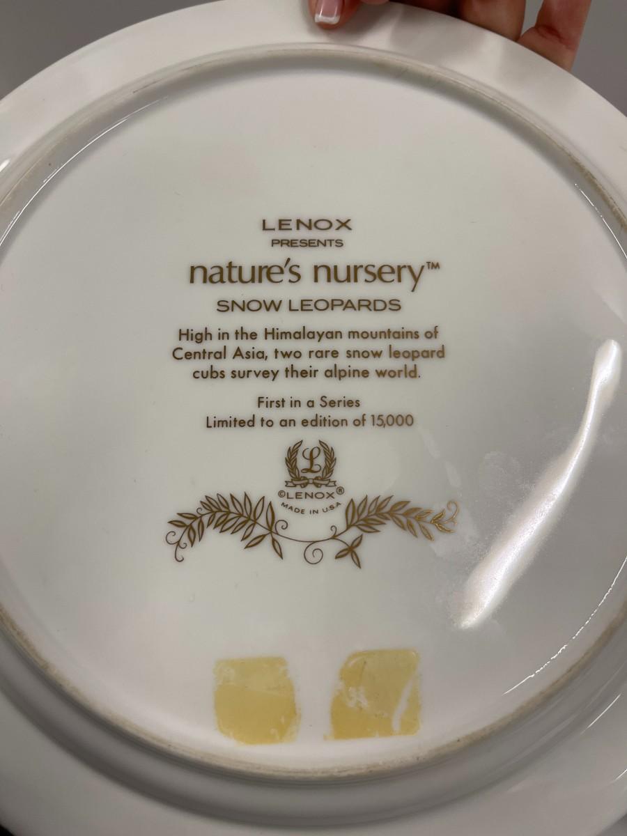 Includes Lenox Nature's Nursery Snow Leopards collector's plate, Lenox Hoopla! snack set, Lenox Lattice server oval bowl and small lenox bowl.