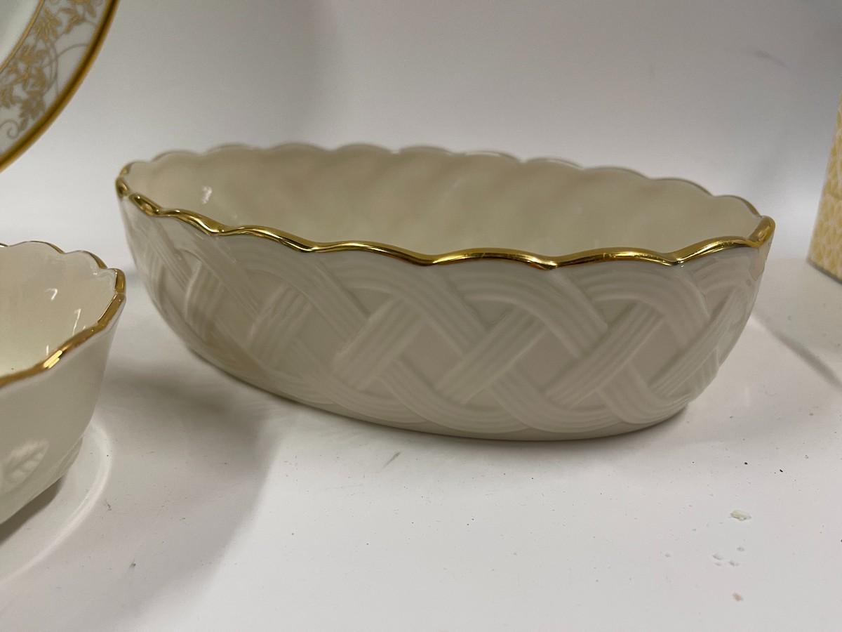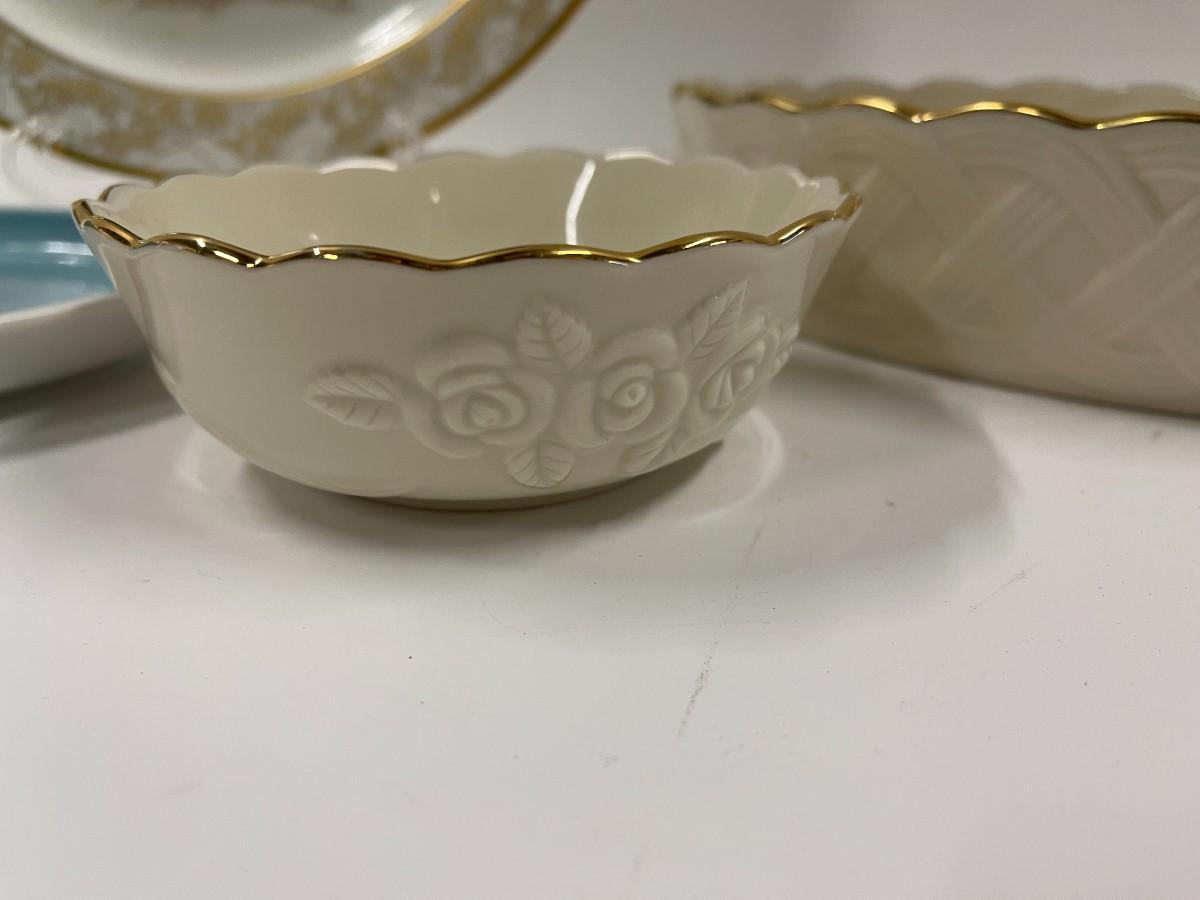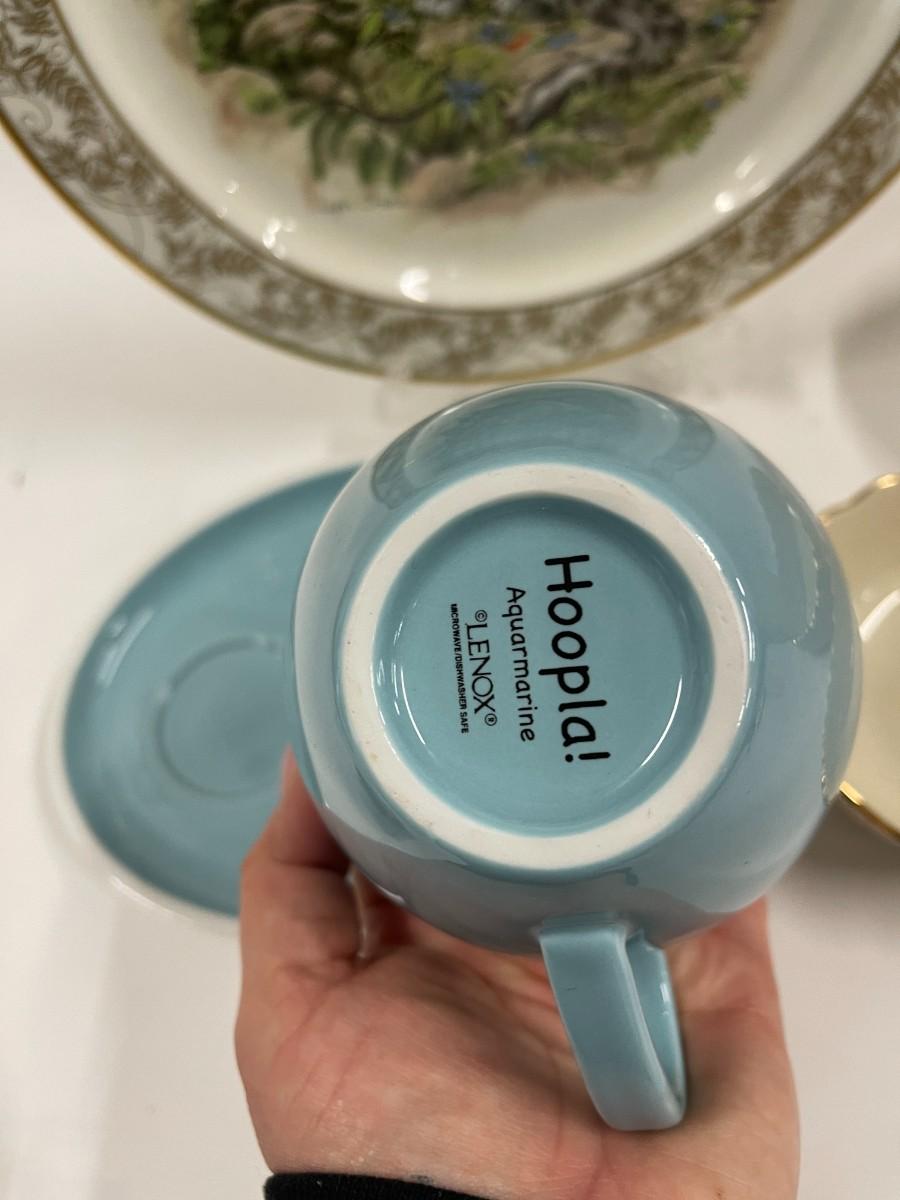 Includes Lenox Nature's Nursery Snow Leopards collector's plate, Lenox Hoopla! snack set, Lenox Lattice server oval bowl and small lenox bowl.