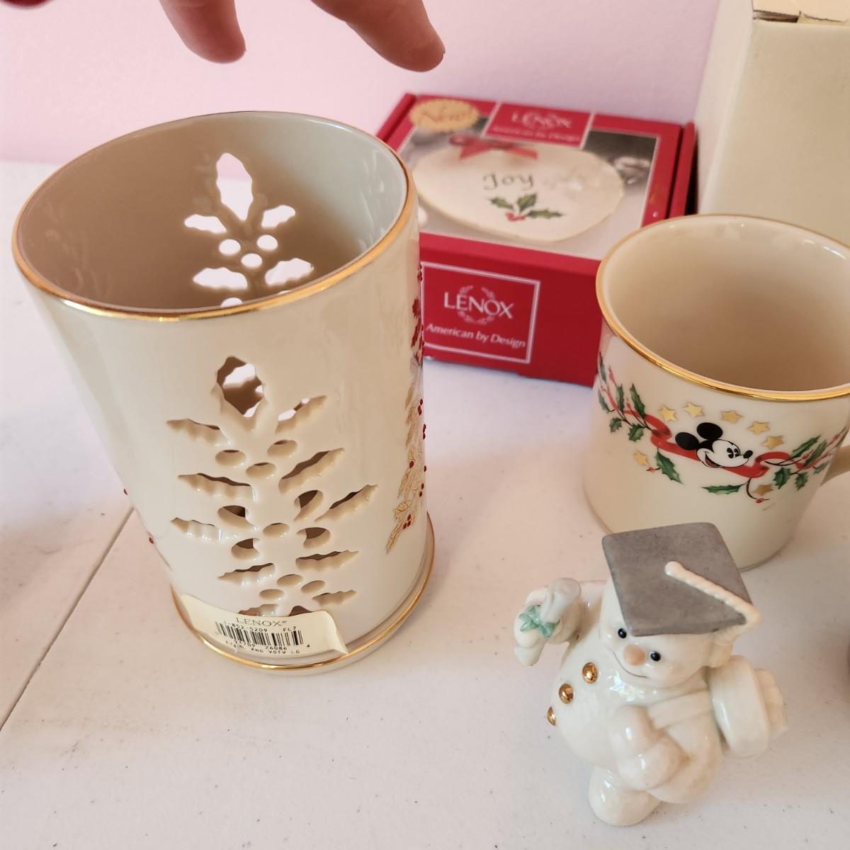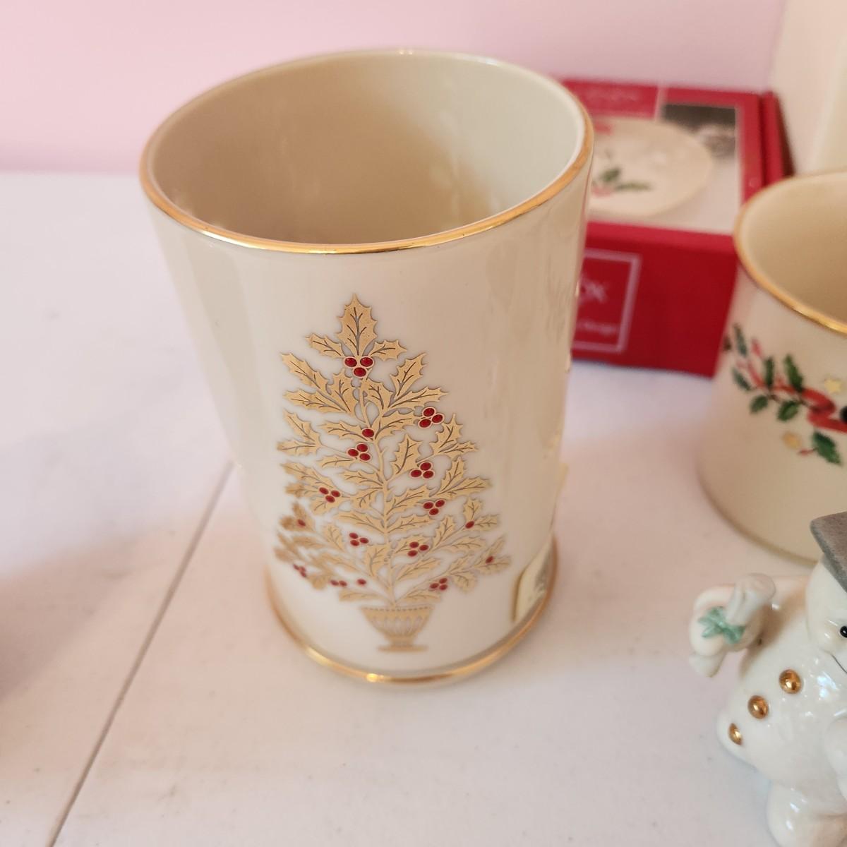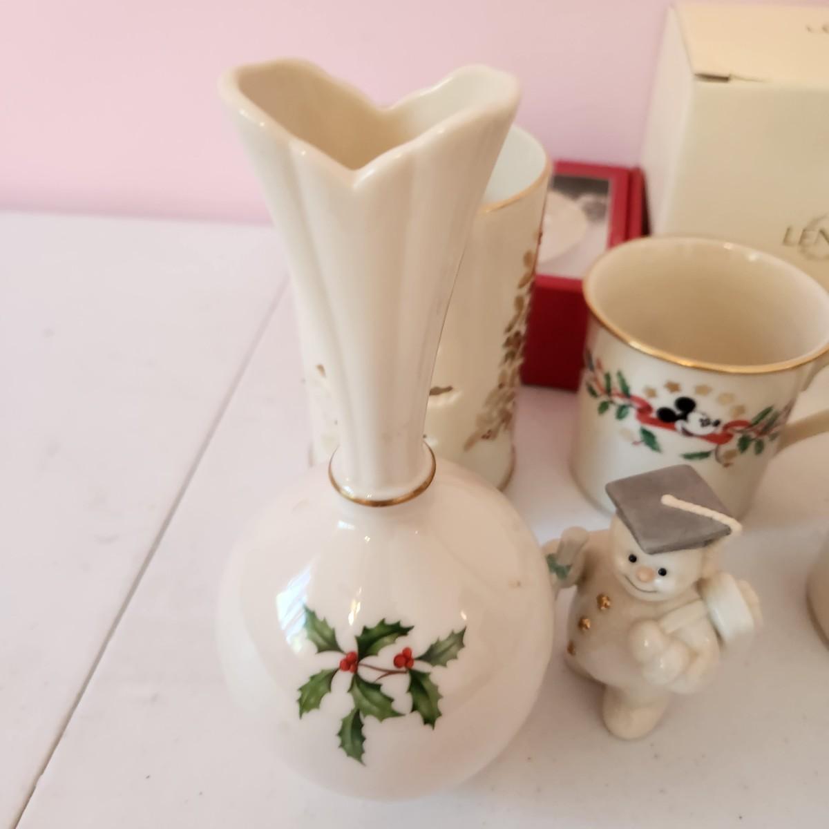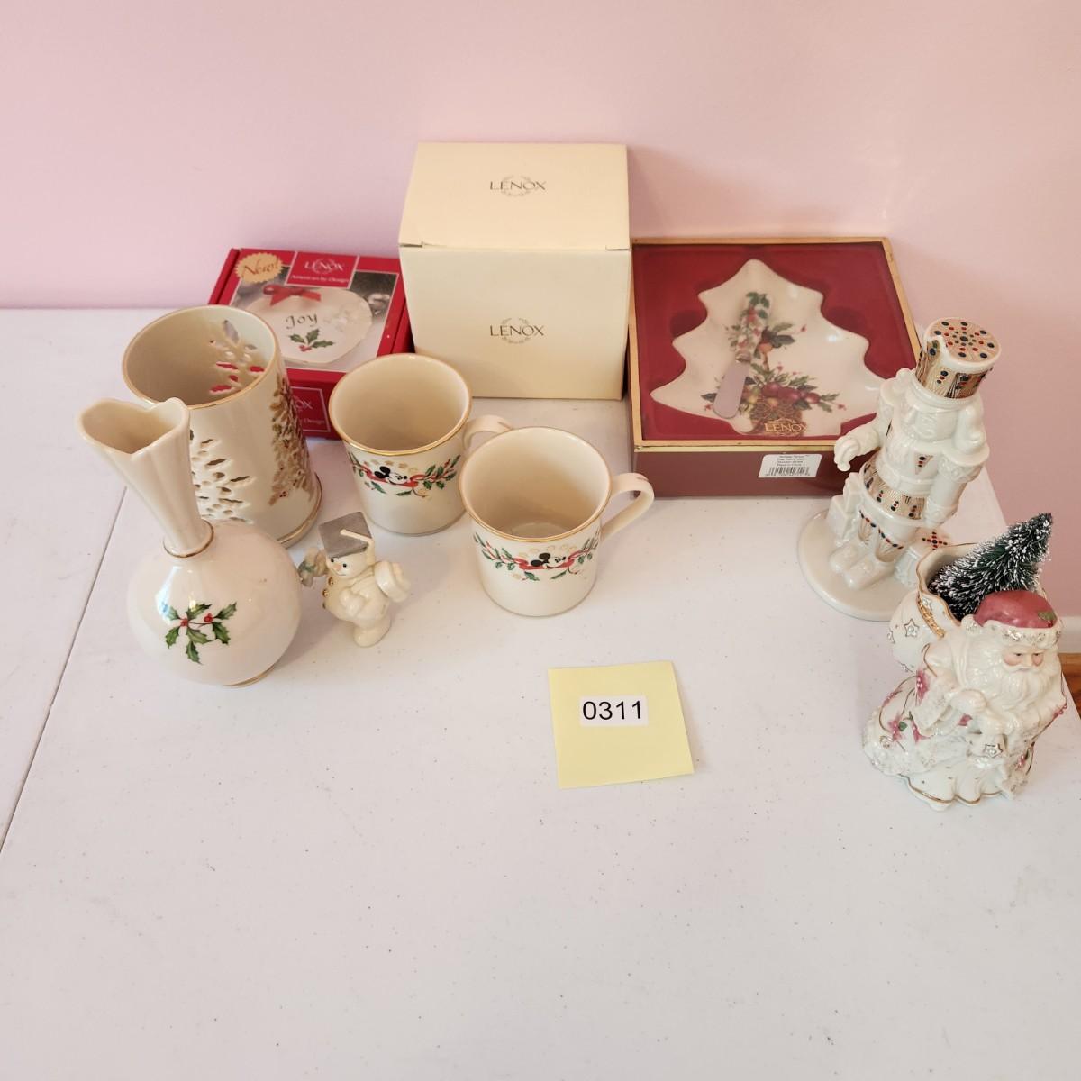 Lot of Lenox China Fall Christmas Table Decor Cups Vases, Dishes Plates Musical Jewelry Box