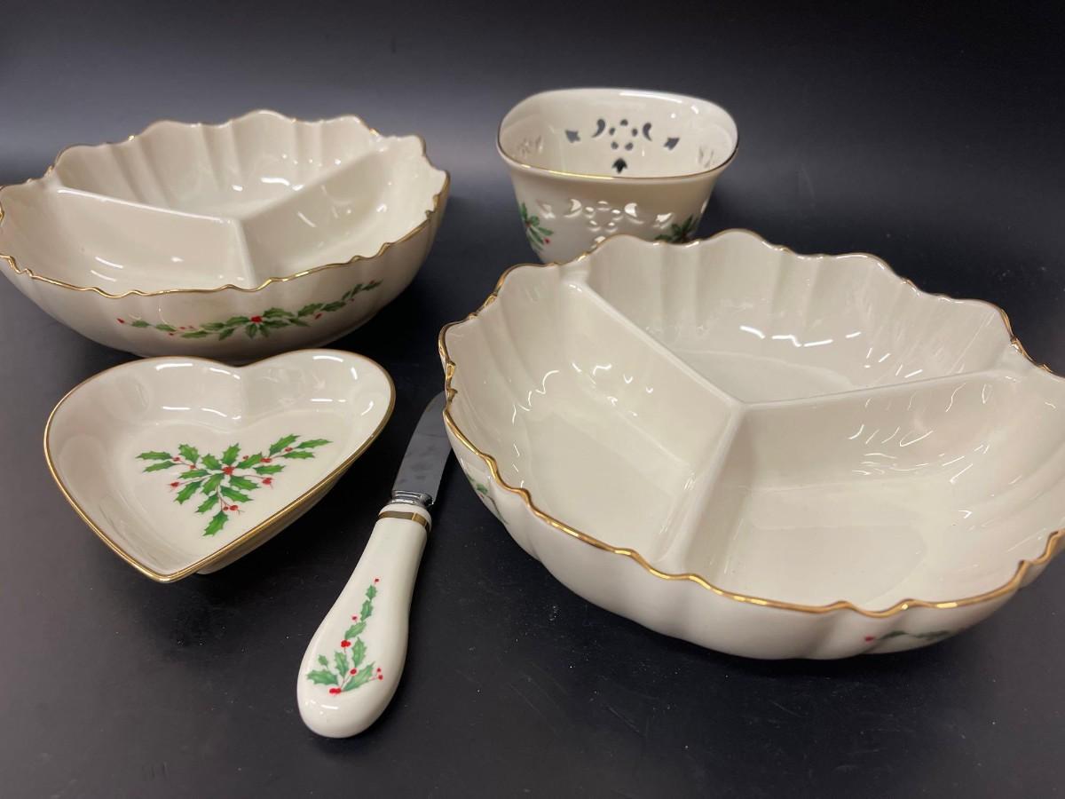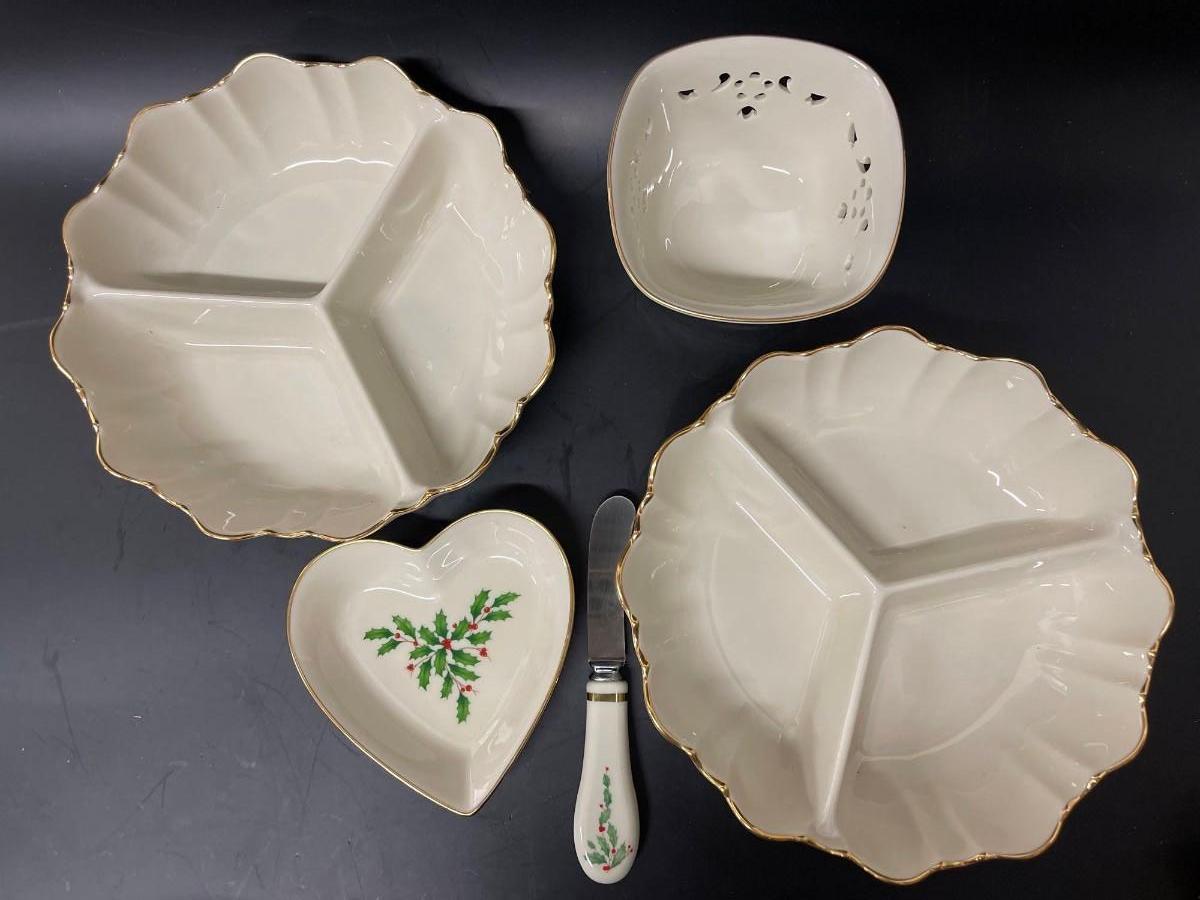 Lot of Lenox Christmas Serving Pieces.