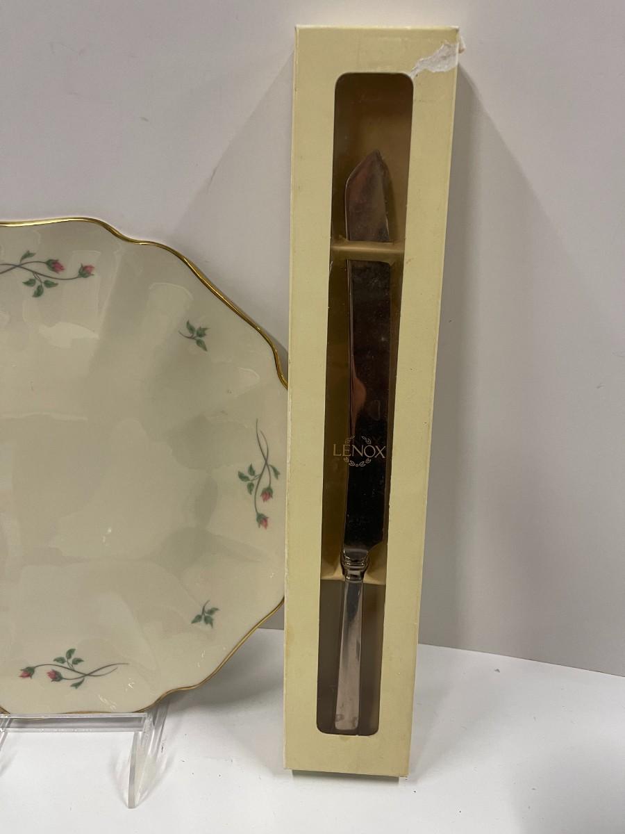 Lot of Lenox: Eternal Frosted Cake Knife, Rose Manor Cake Plate/Platter and Lenox Special Bowl