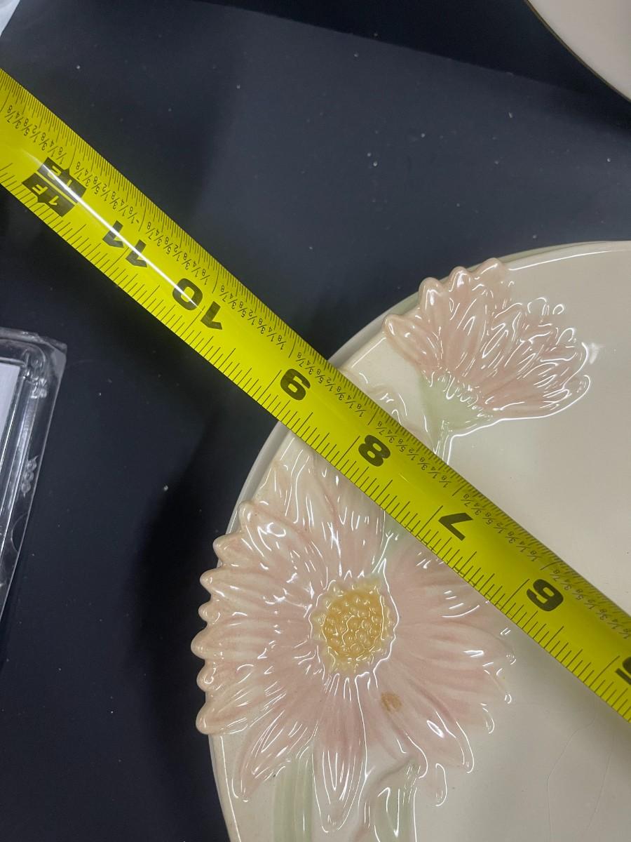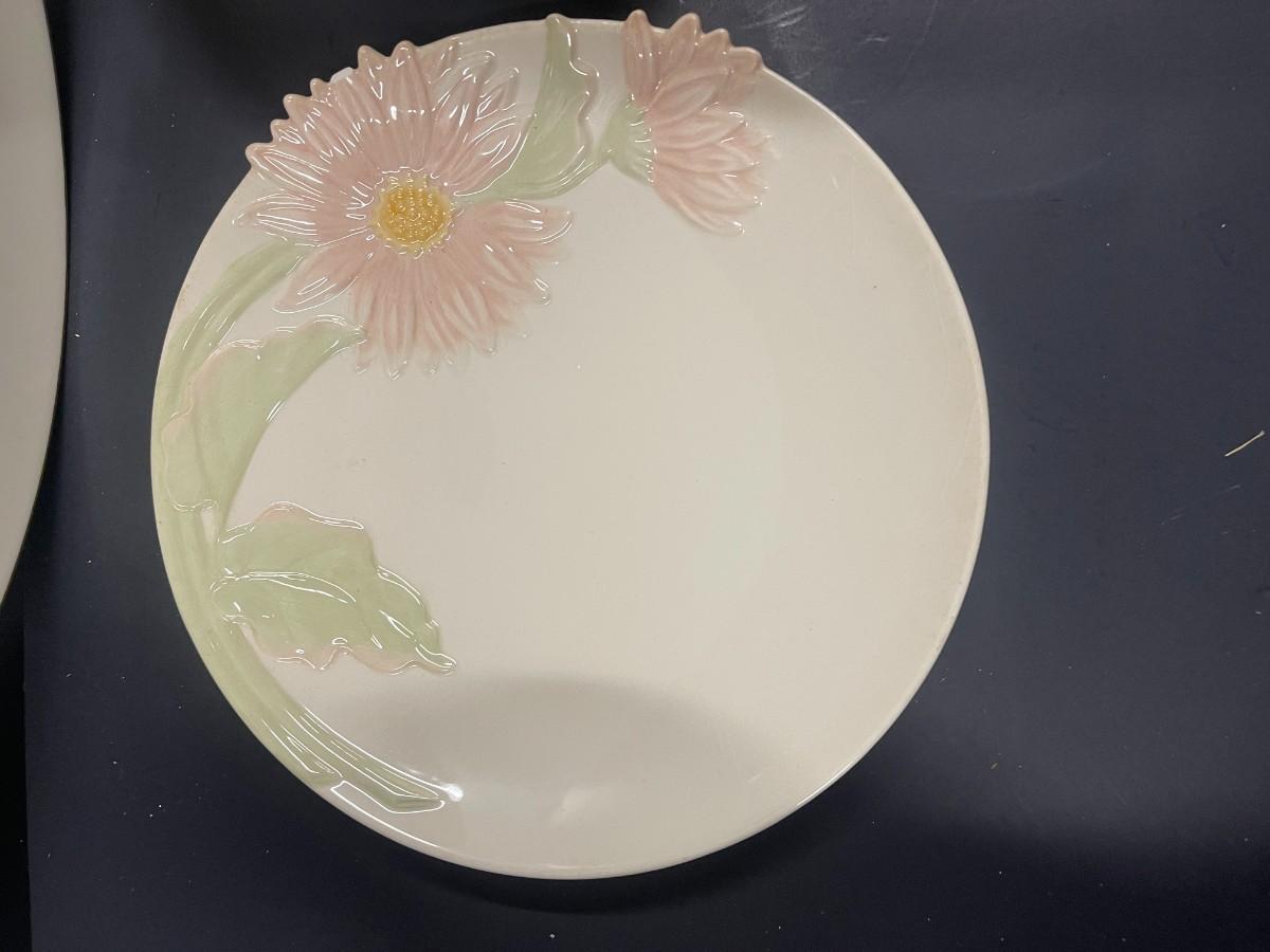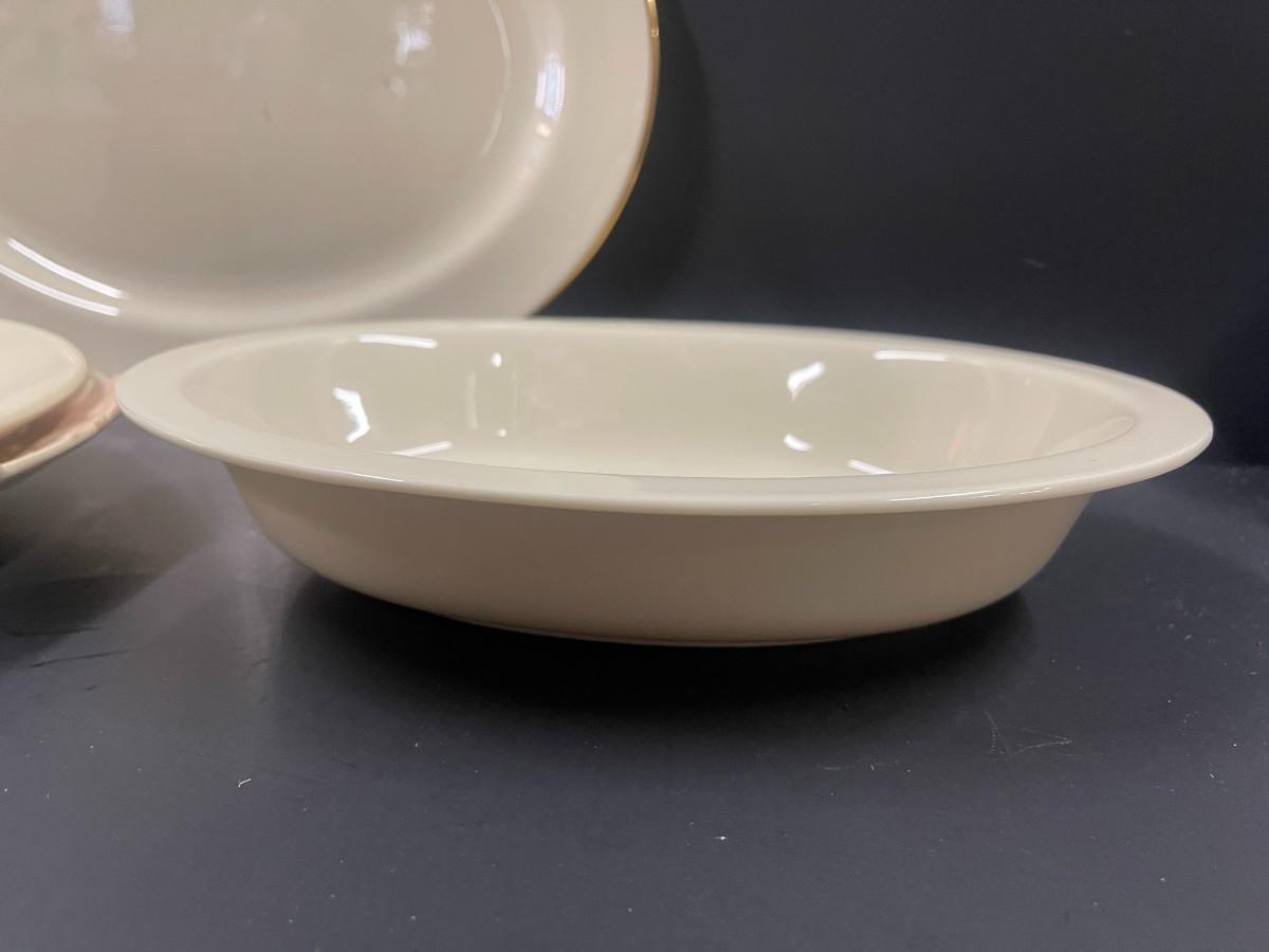 Lot of Lenox. Includes oval serving platter with gold rim, ivory china oval bowl & pair of Floral Blossoms Gerber Daisy dessert plates, new condition.