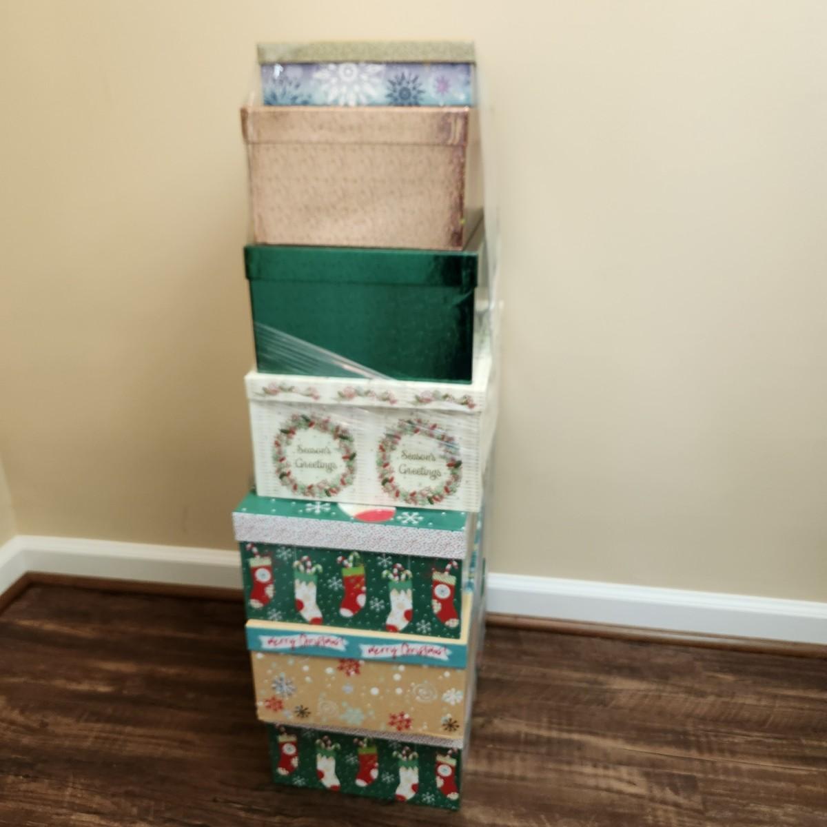 Lot of Lindy Bowman Holiday Christmas Gift Boxes many nesting ones