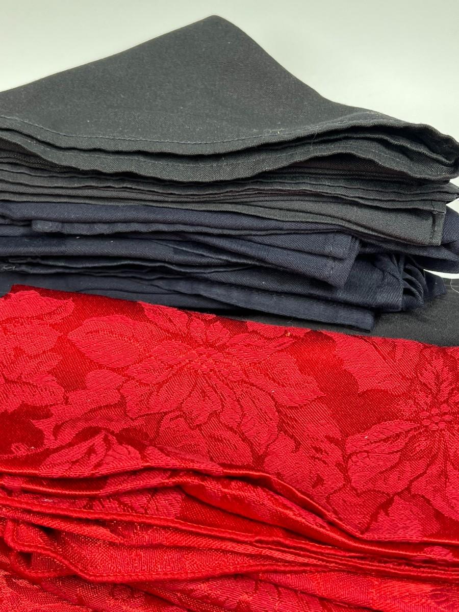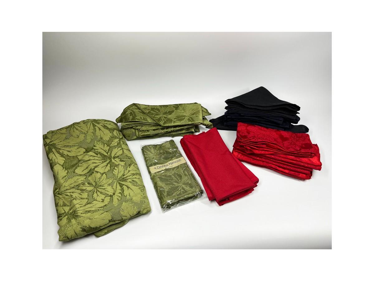 Lot of Linen Dinner Napkins Bardwil Linens & Matching Table Cloth, there is no significant tears or rips and is in good useable condition. Check picture for more details and for sizing.