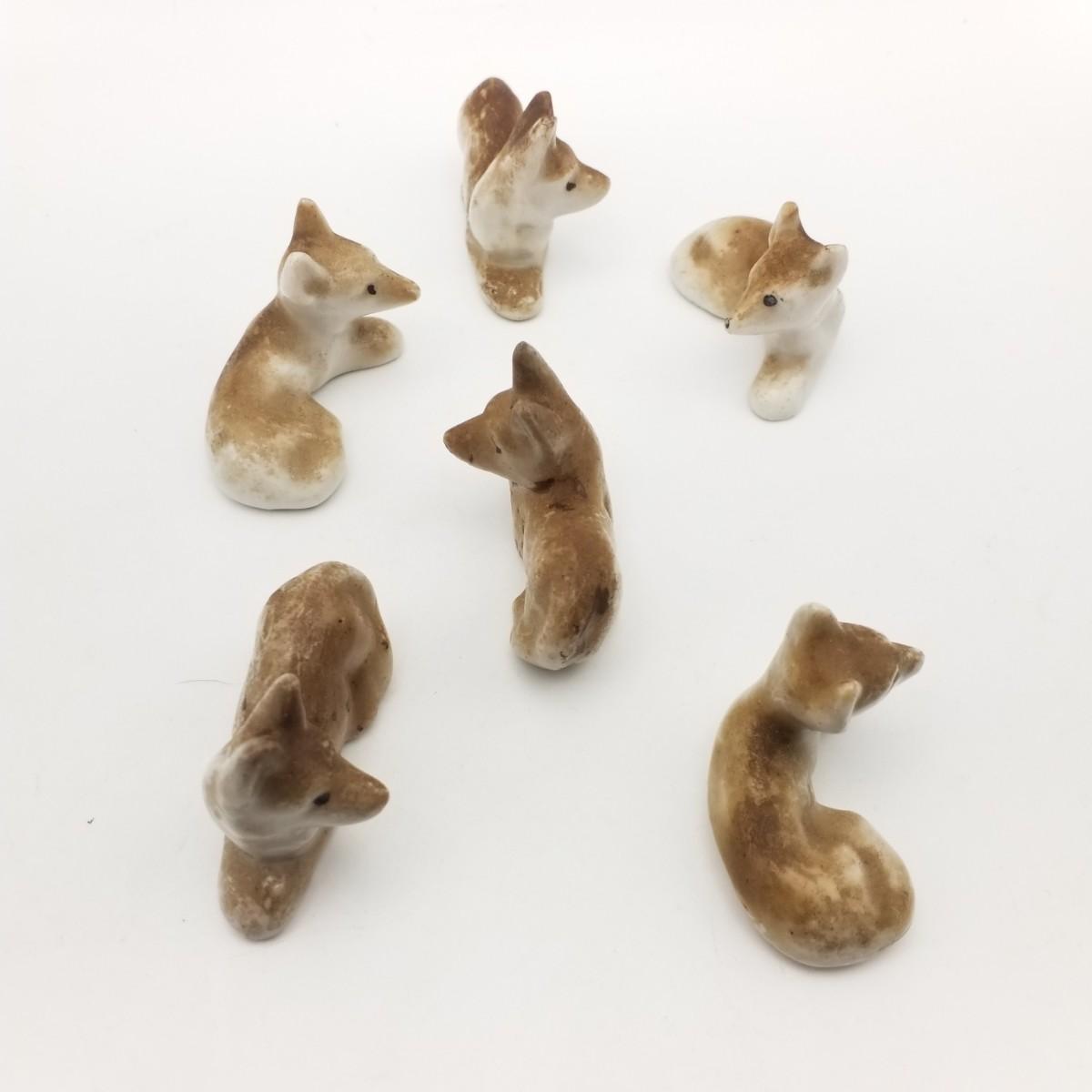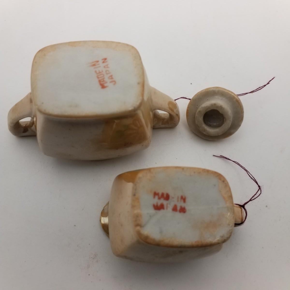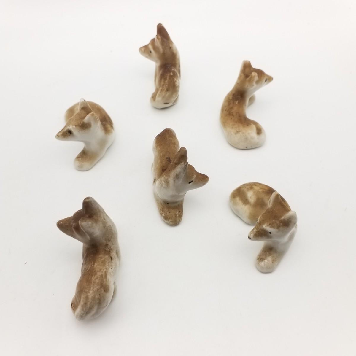 Lot of Made In Japan / Occupied Japan Miniatures Rose Pitcher Set of 6 Porcelain Dogs / Foxes, 3 Piece Peach Lusterware Bone China Children Toy Tea Set Creamer Sugar Bowl Lid NO CHIPS / CRACKS