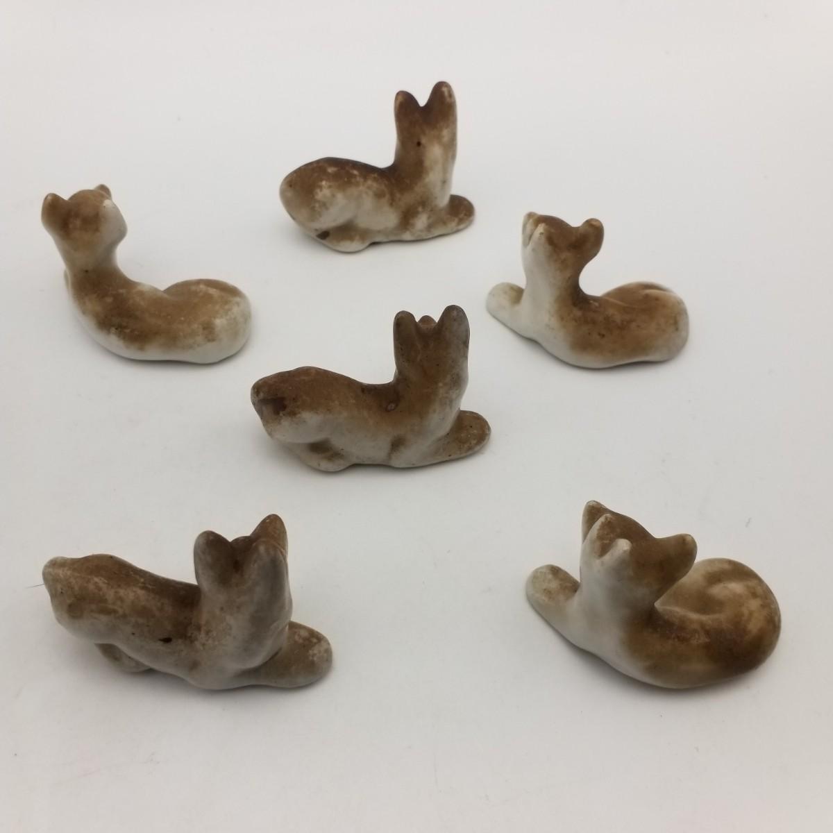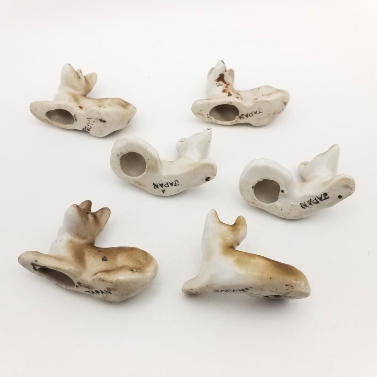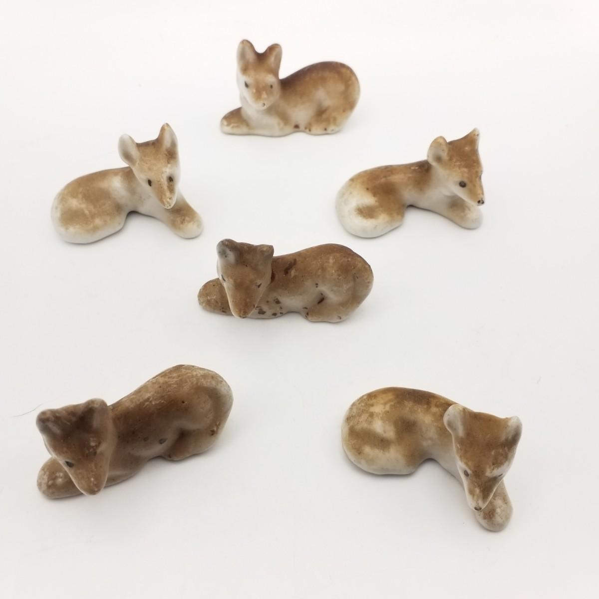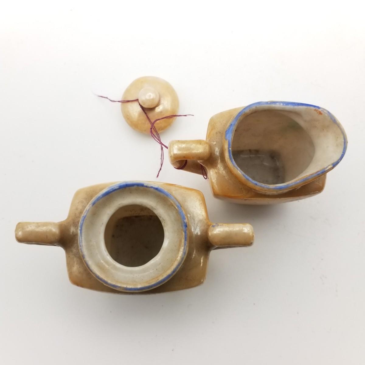 Lot of Made In Japan / Occupied Japan Miniatures Rose Pitcher Set of 6 Porcelain Dogs / Foxes, 3 Piece Peach Lusterware Bone China Children Toy Tea Set Creamer Sugar Bowl Lid NO CHIPS / CRACKS