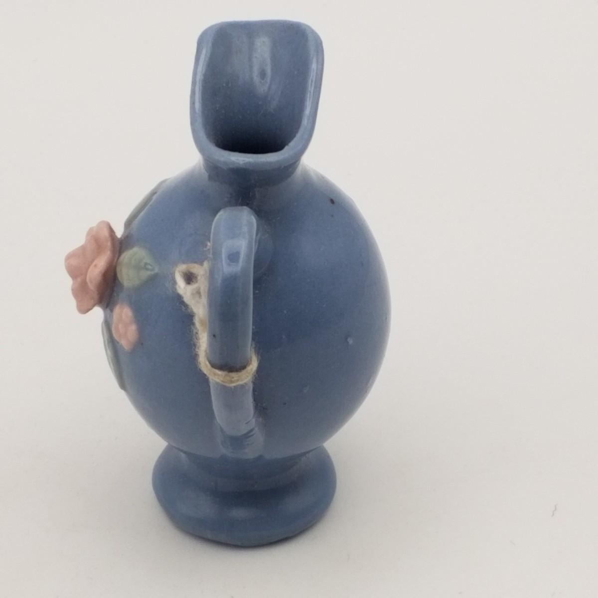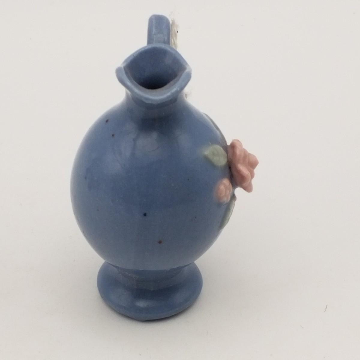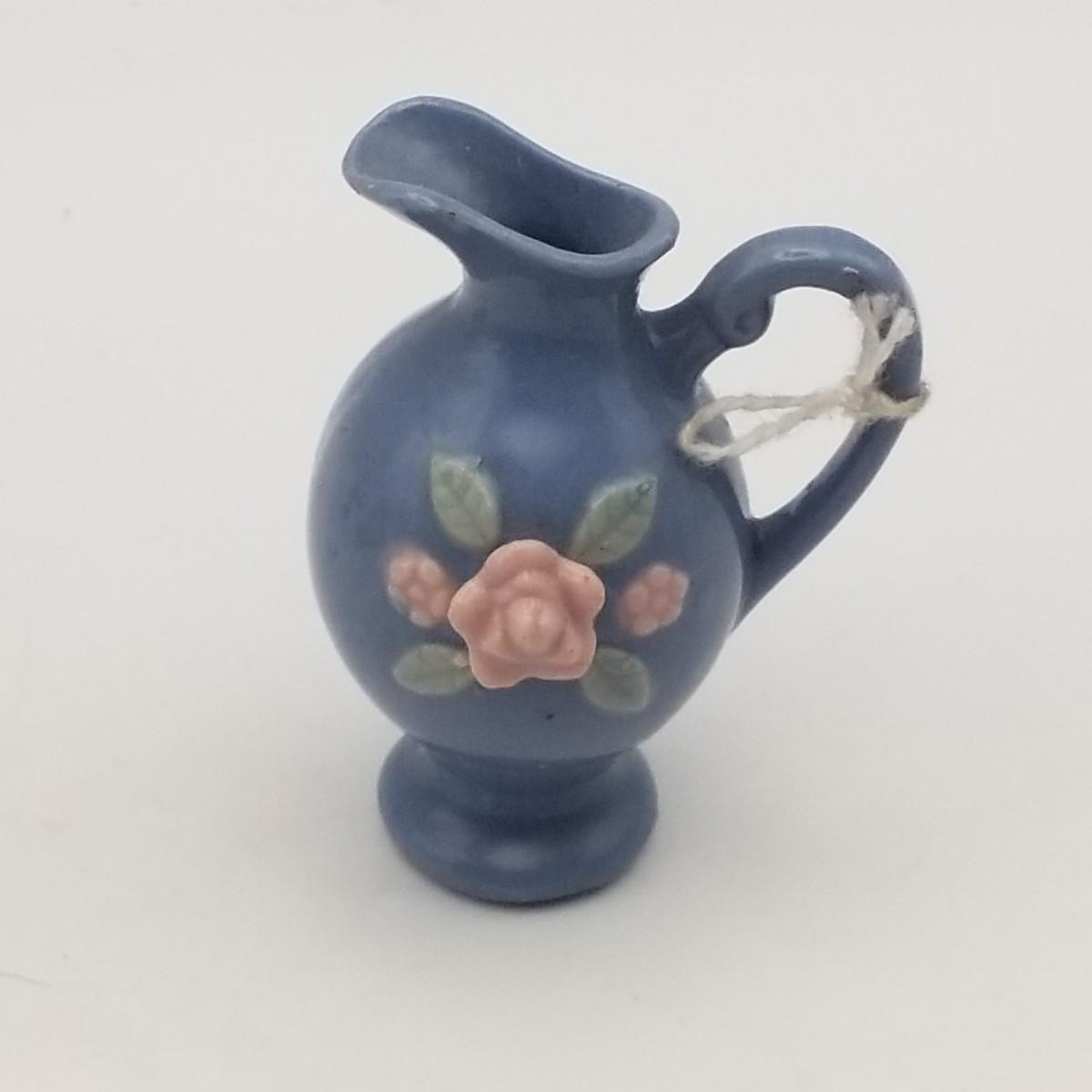 Lot of 10 Pieces Made In Japan / Made In Occupied Japan Miniatures: Flower Rose Pitcher (Blue, Green, Pink), Set of 6 Painted Porcelain Dogs or Foxes, 3 Pieces of Peach Lusterware Bone China Children Tea Set (Handpainted Floral Cherry Blossom or Chrysanthemum?) Creamer Sugar bowl With Lid
