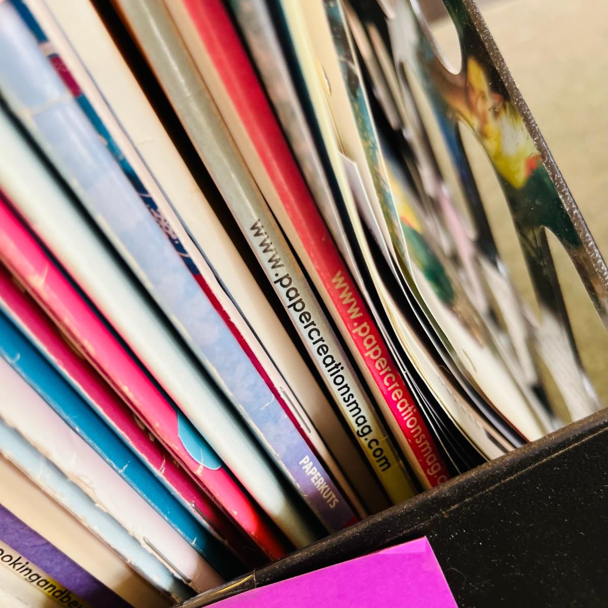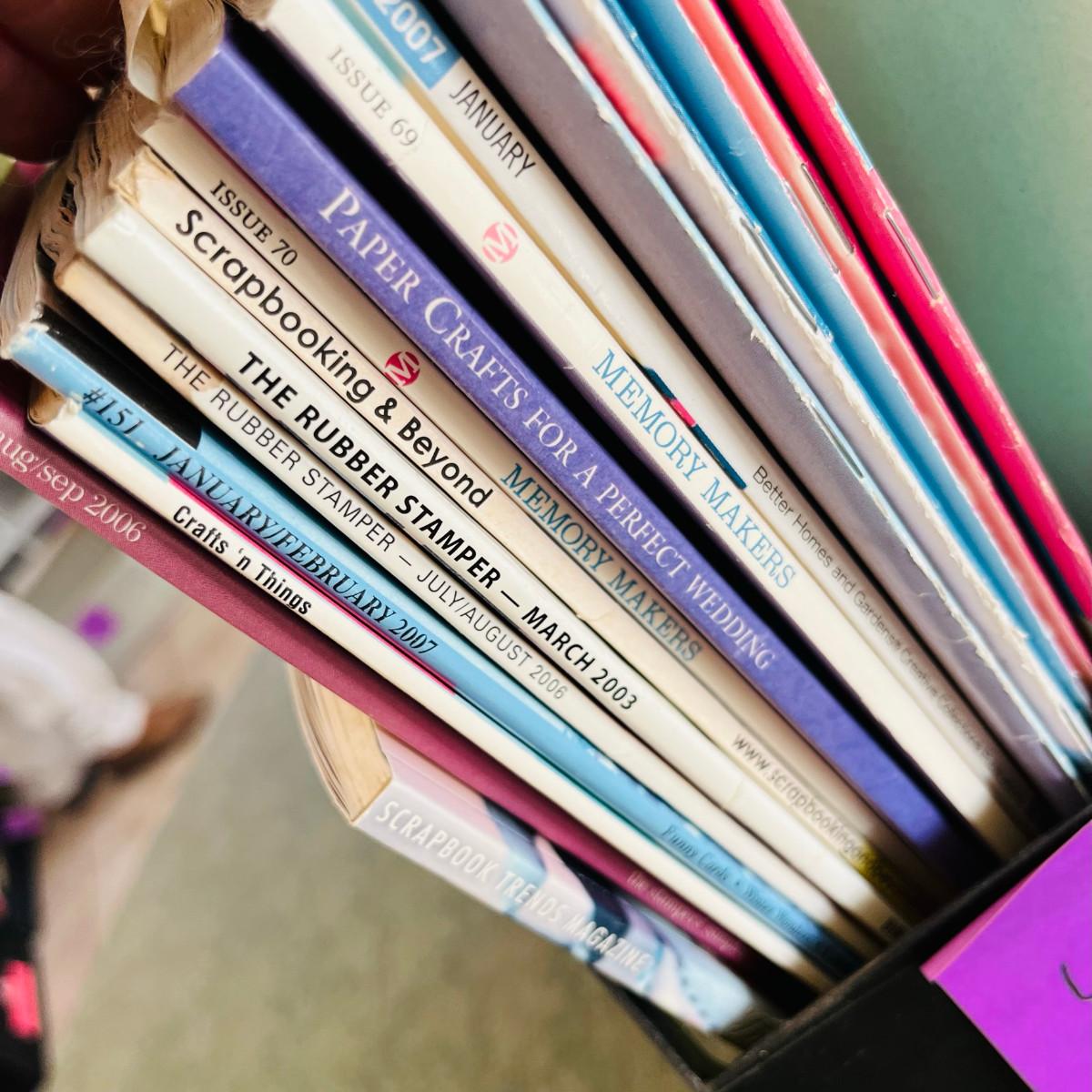 Please take a close look at the titles! We have lots of these racks with booklets & magazines. They are generally on Cake Decorating, Stamping, Sewing, & Scrapbooking!