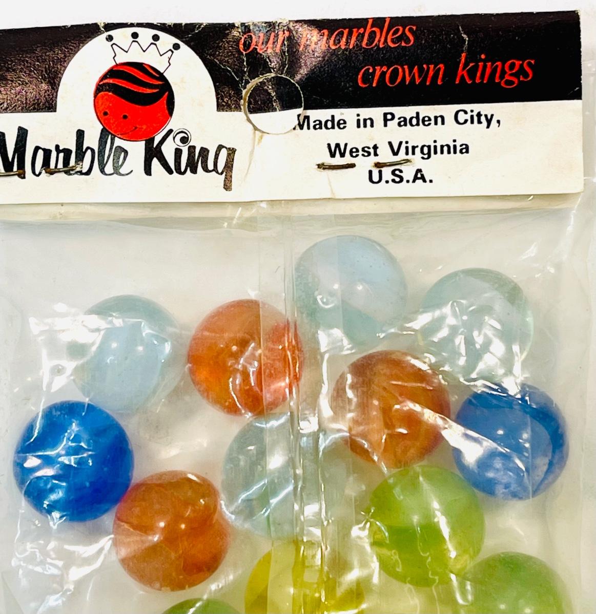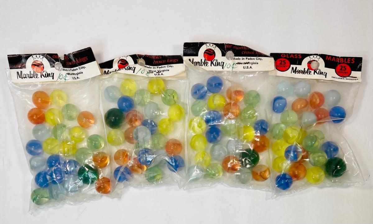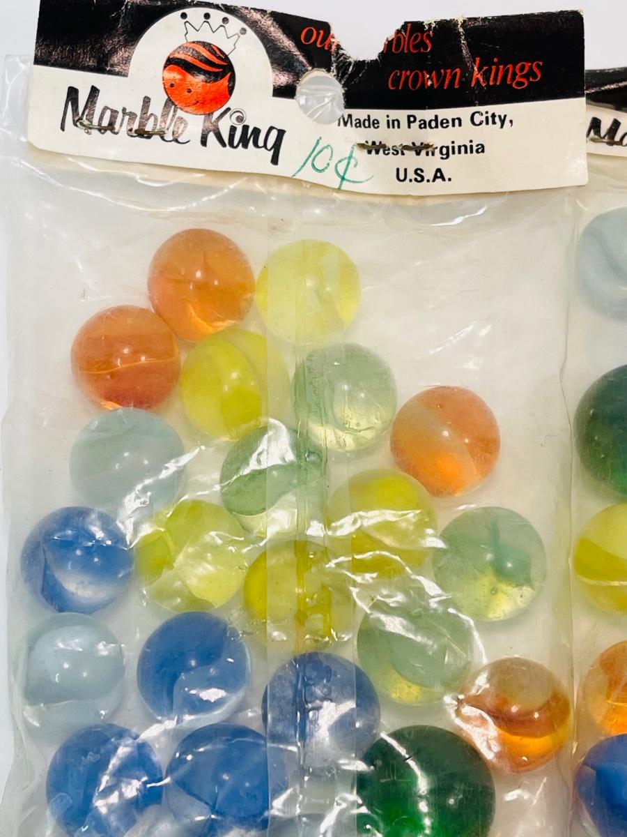 Paden City, WV made marbles. Sealed bags some have writing on them as pictured. Pretty! All bags include a shooter.