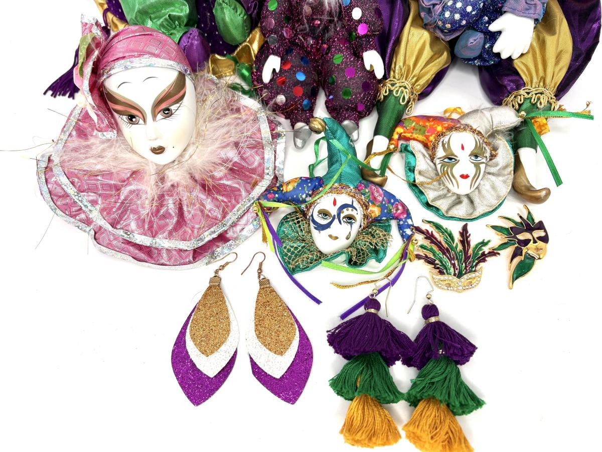 Lot of Mardi Gras Dolls and Jewelry