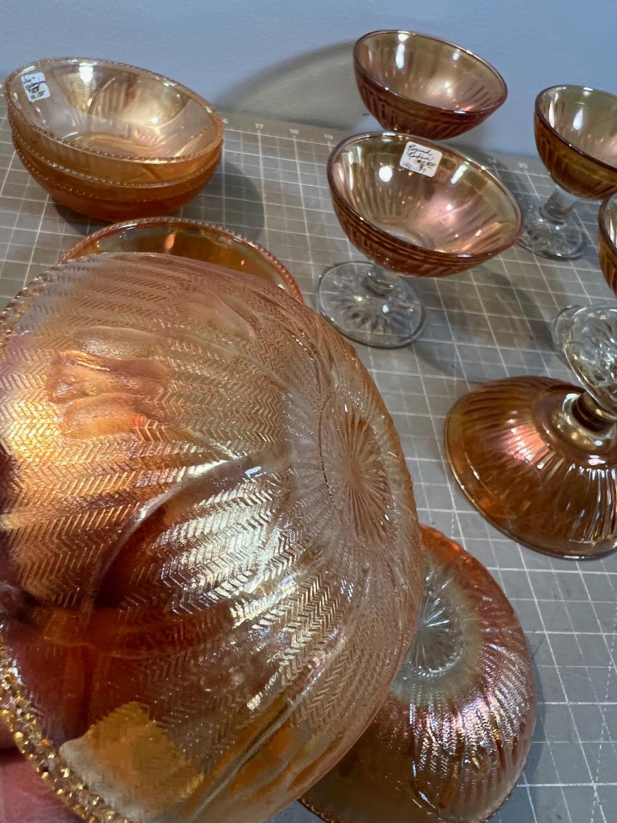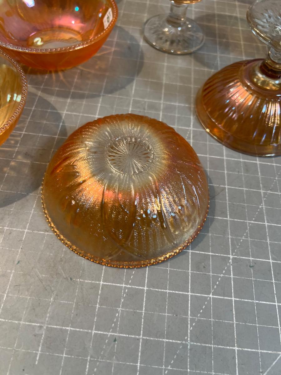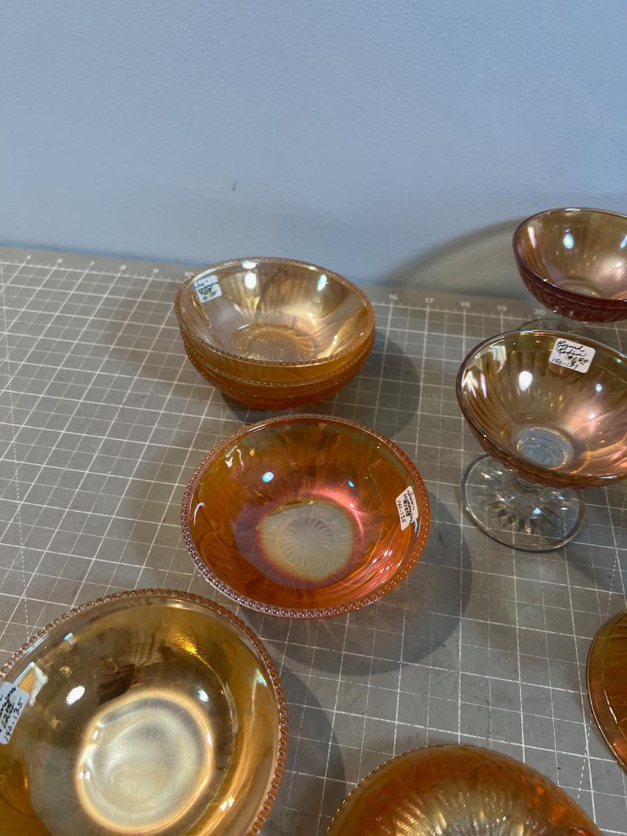 Lot of Marigold Carnival Glass, Iris and Herringbone