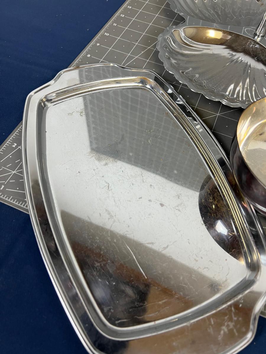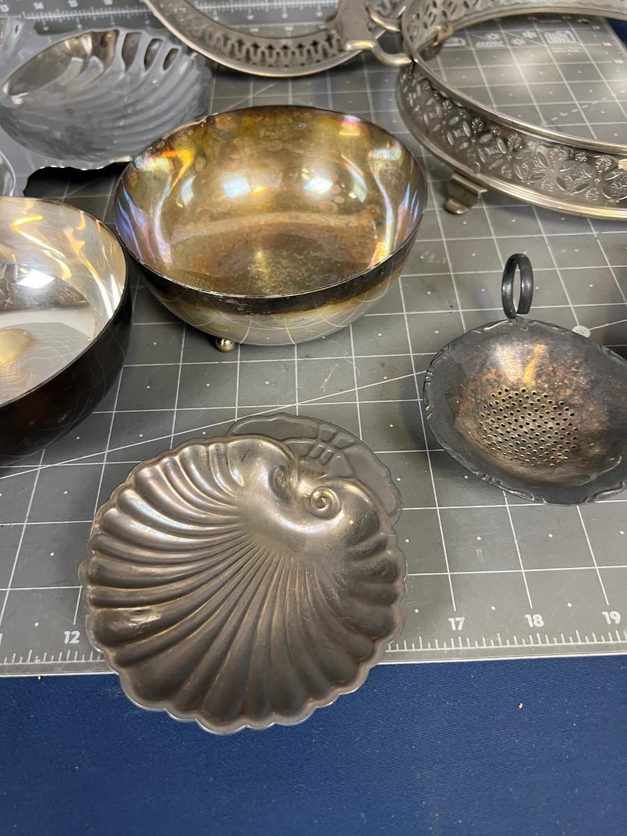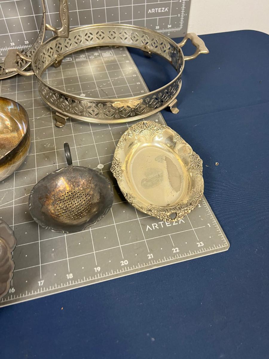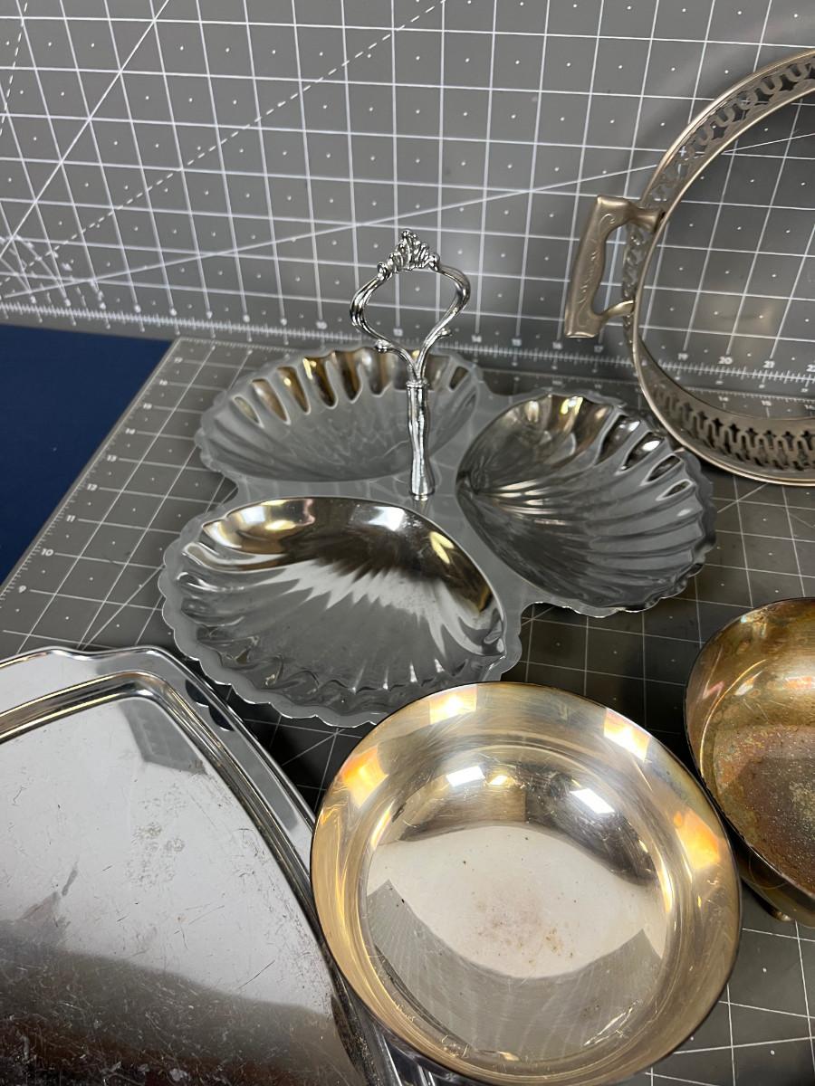Lot of Metal Serving Items: Small Trays and Hors d'oeuvres