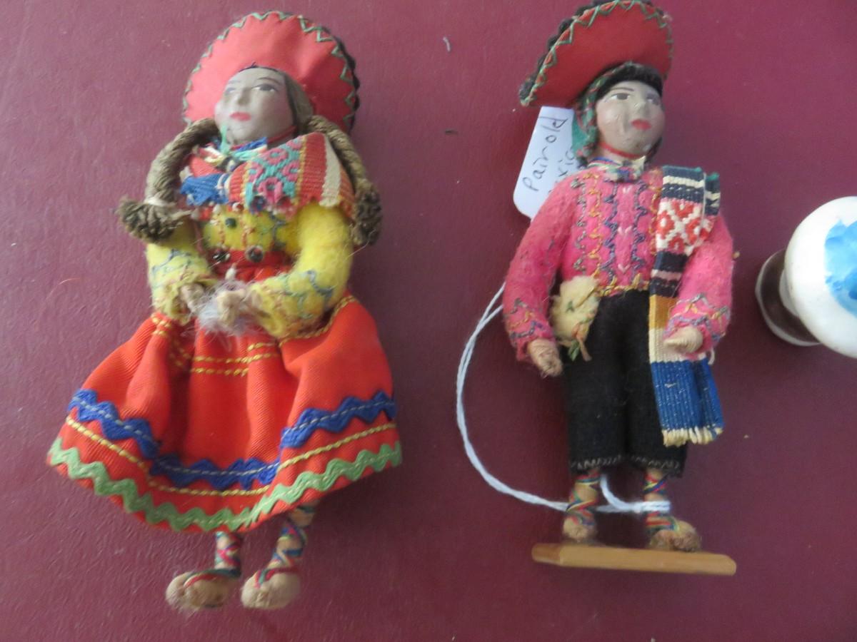Lot of Mexican Items - Dolls, Small Plates, Tiny jug