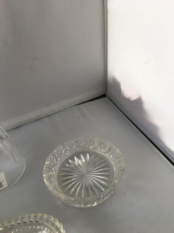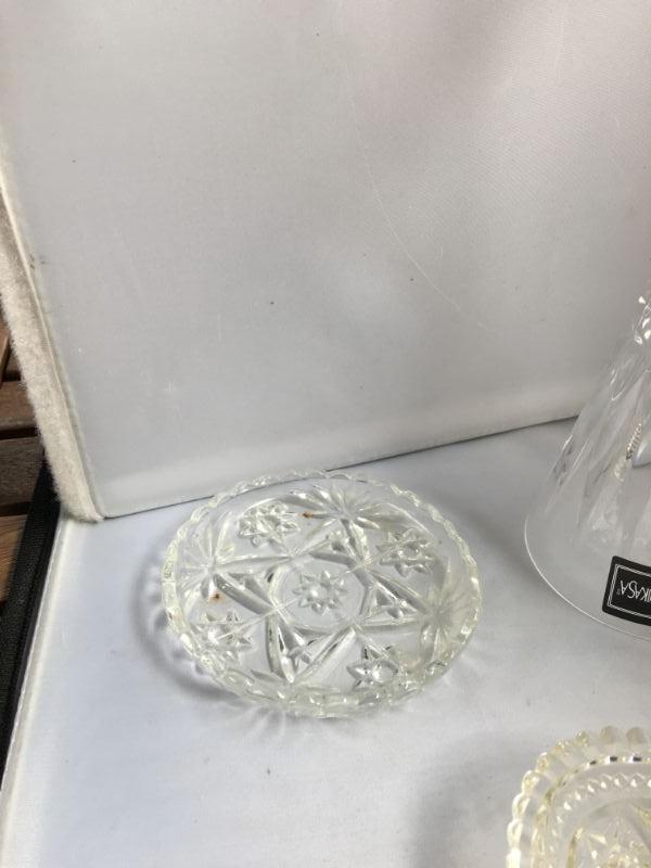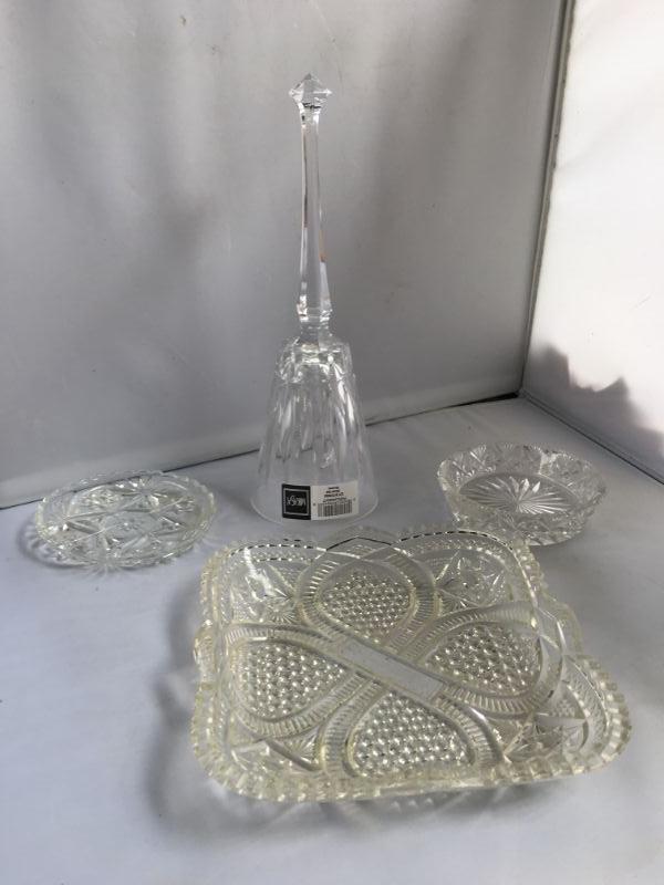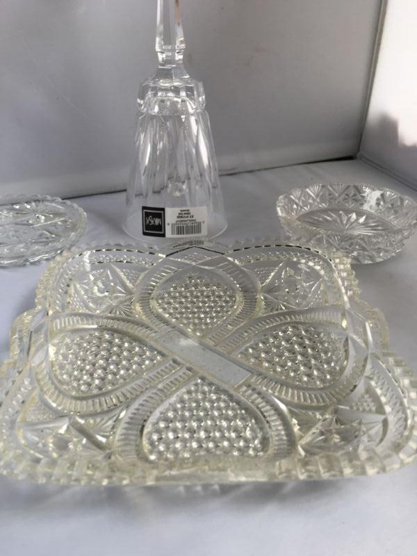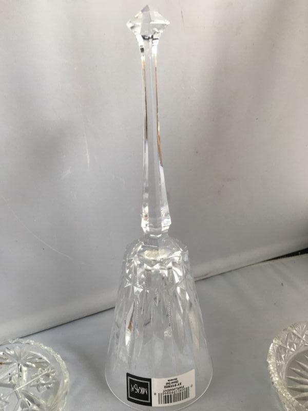Lot of Mikasa Crystal Bell, 2 Small Crystal Trays and a Larger one