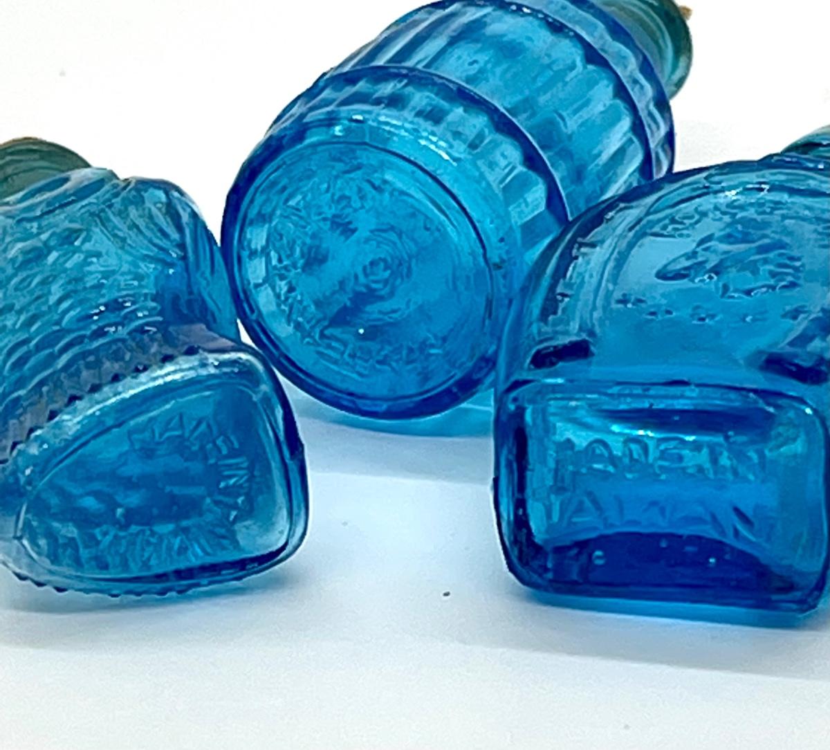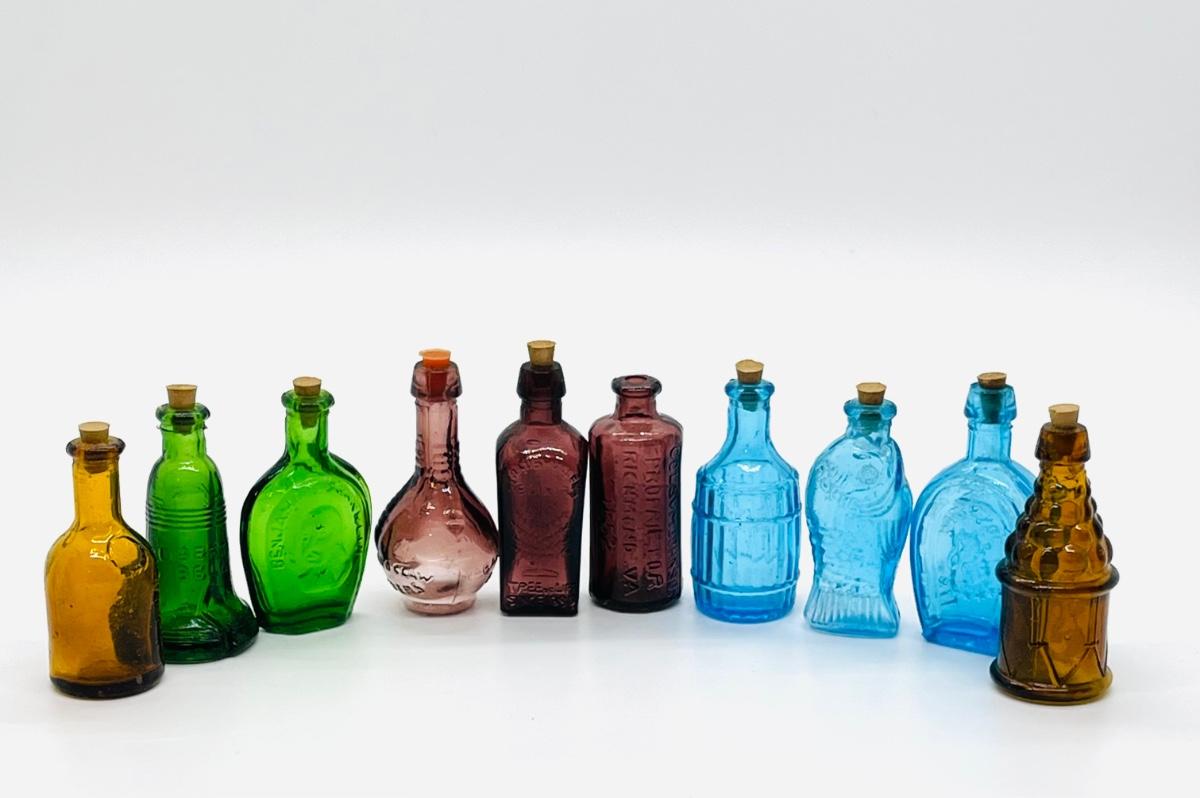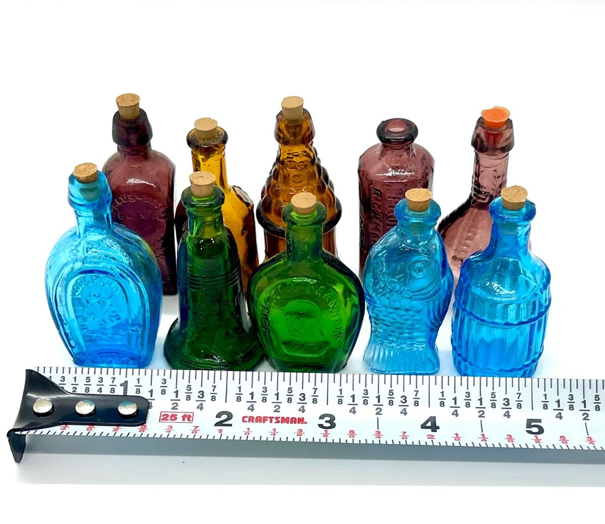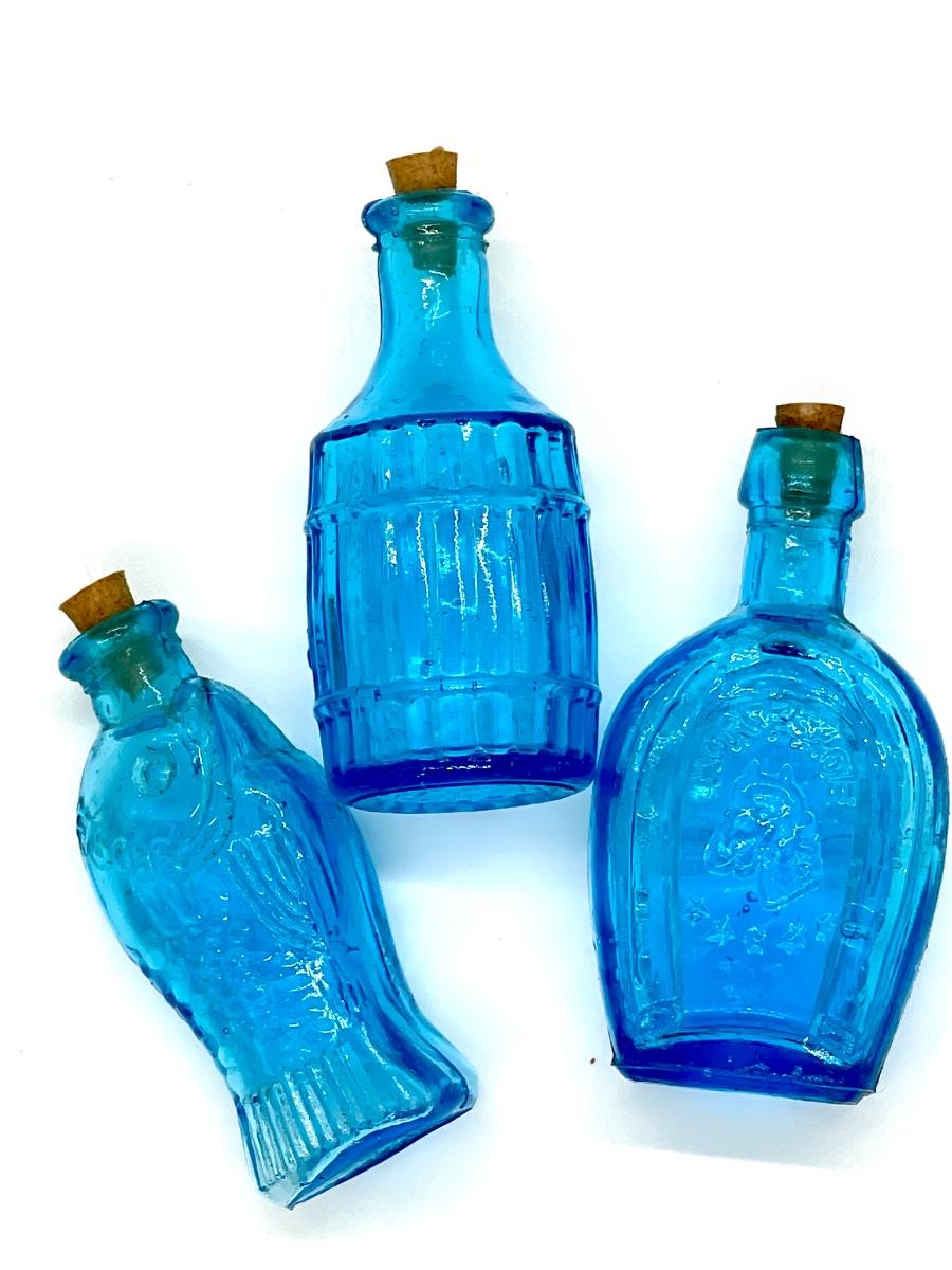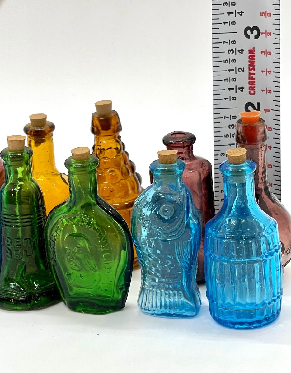 Super sweet, beautifully colored glass, repro mini bitters bottles with stoppers. What a great little punch of color to add almost anywhere. These vintage glass pieces would make a great addition to your apothecary collection or gift for glass collectors. Made in Taiwan