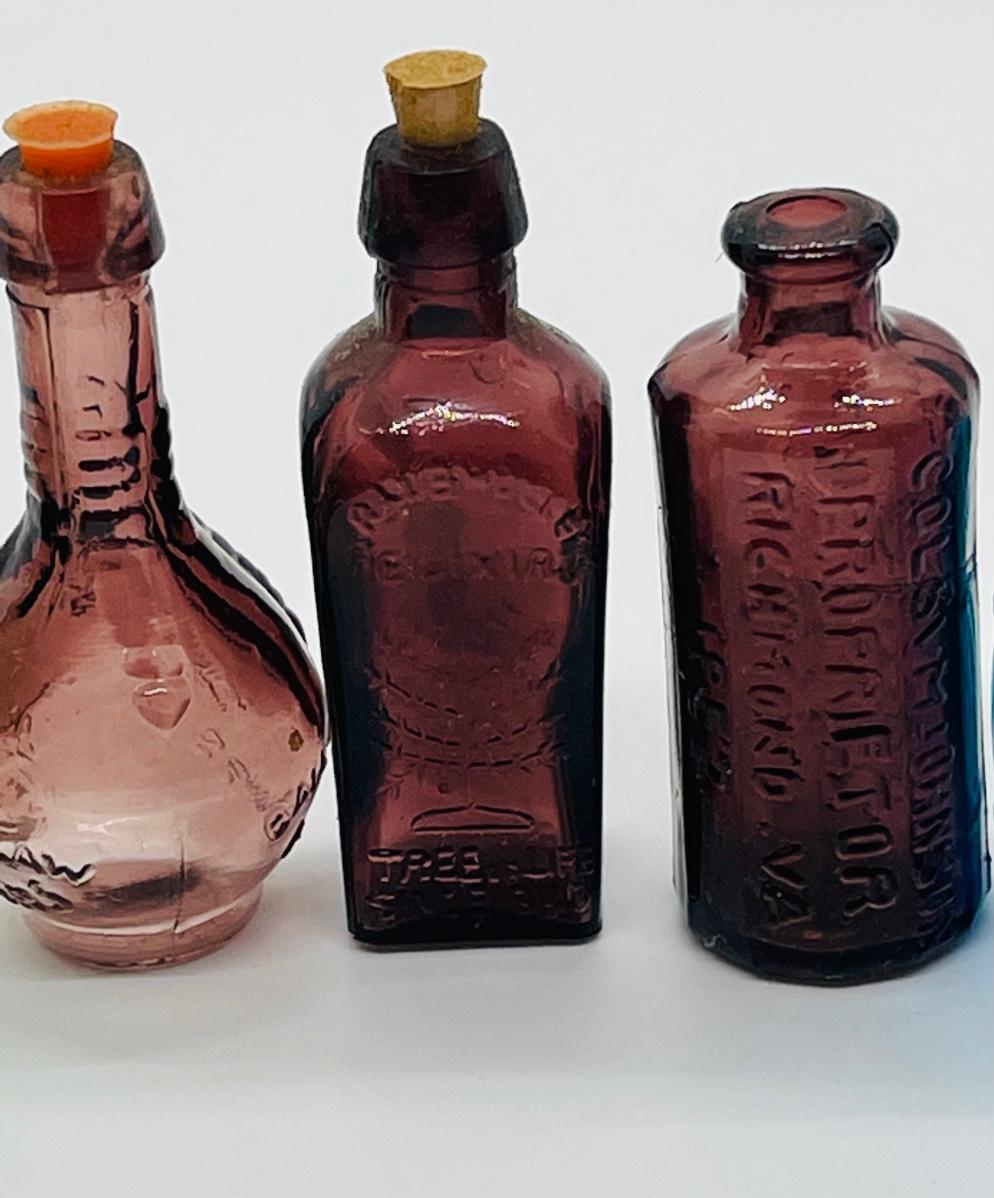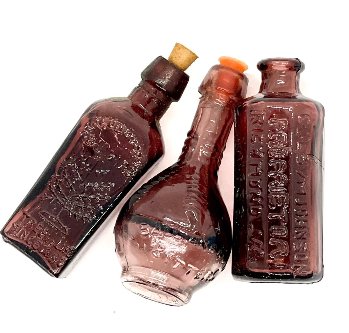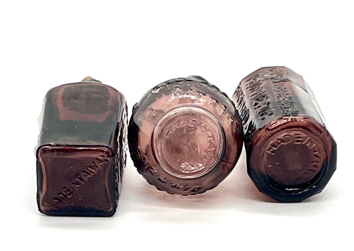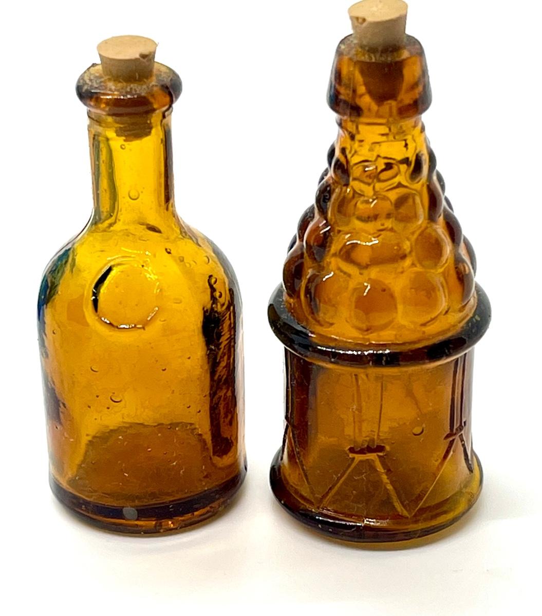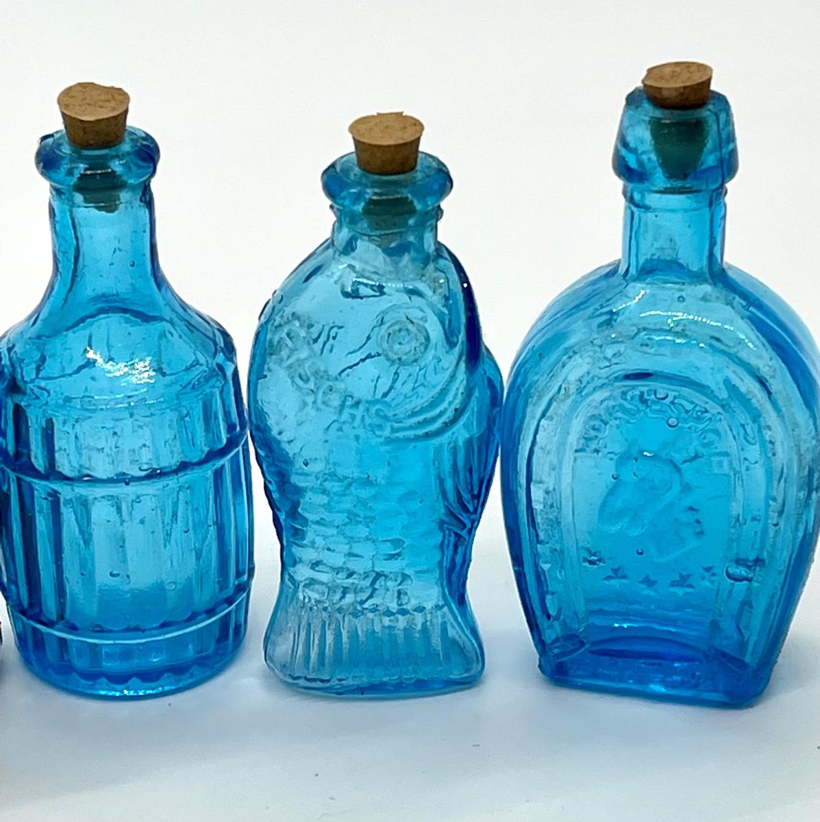 Super sweet, beautifully colored glass, repro mini bitters bottles with stoppers. What a great little punch of color to add almost anywhere. These vintage glass pieces would make a great addition to your apothecary collection or gift for glass collectors. Made in Taiwan