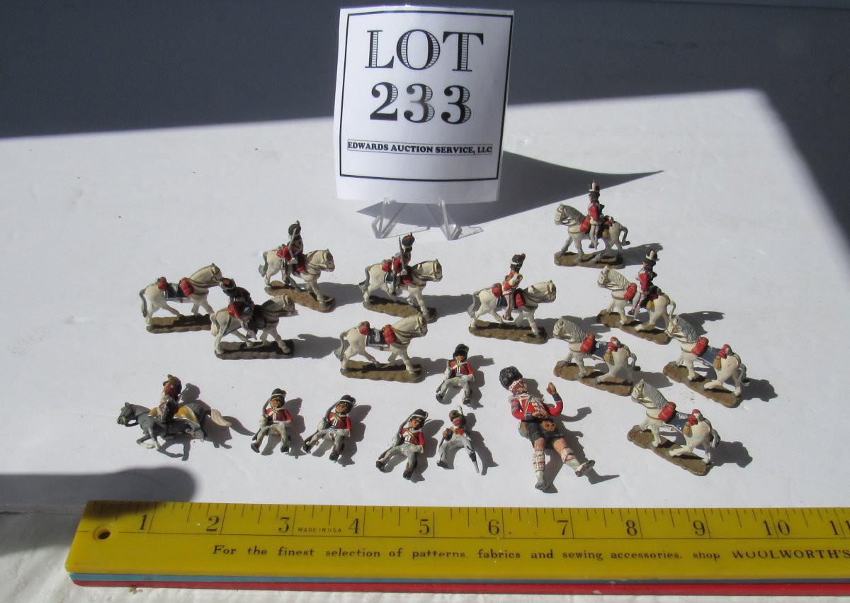 All the soldiers are off their horses and sit fine but you may want to glue them back on. One horse does not have its base. The taller one is as, does not stand on its own. Shipping is available on this lot with additional shipping and handling fees. See our terms for details.