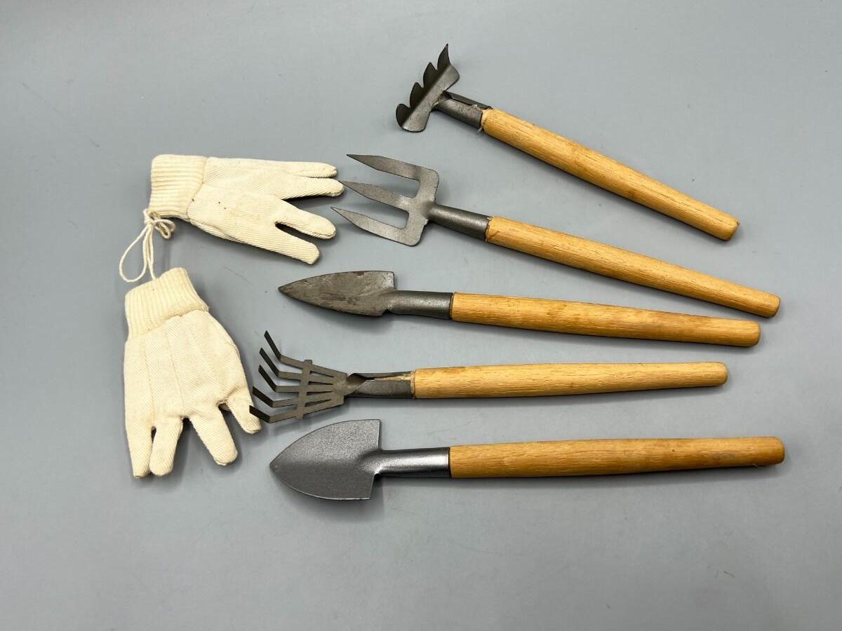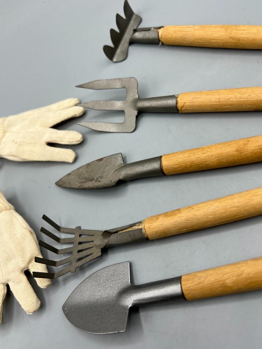Lot of Miniature Wood & Metal Displayable Gardening Tools