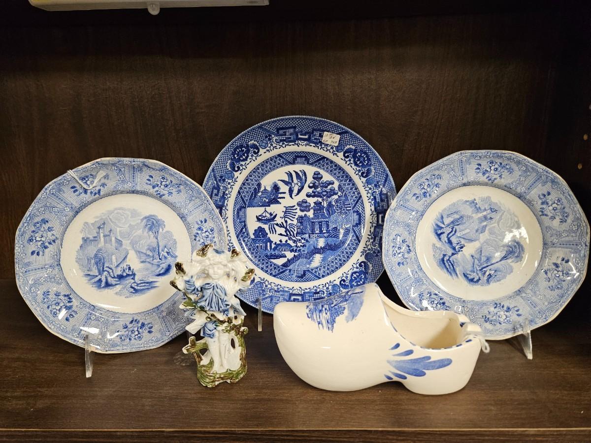 Lot of Misc Antique Blue Ware