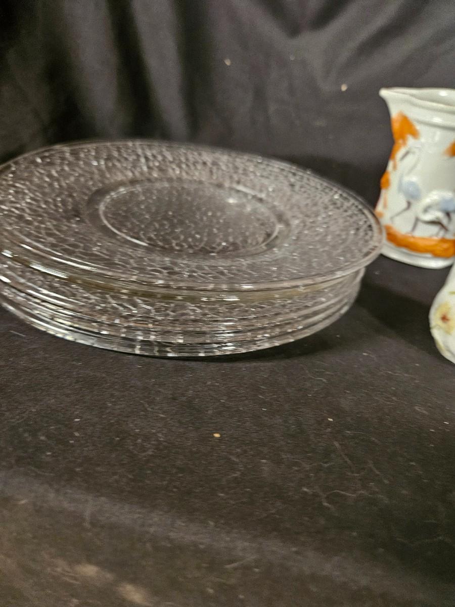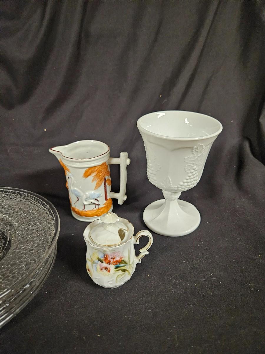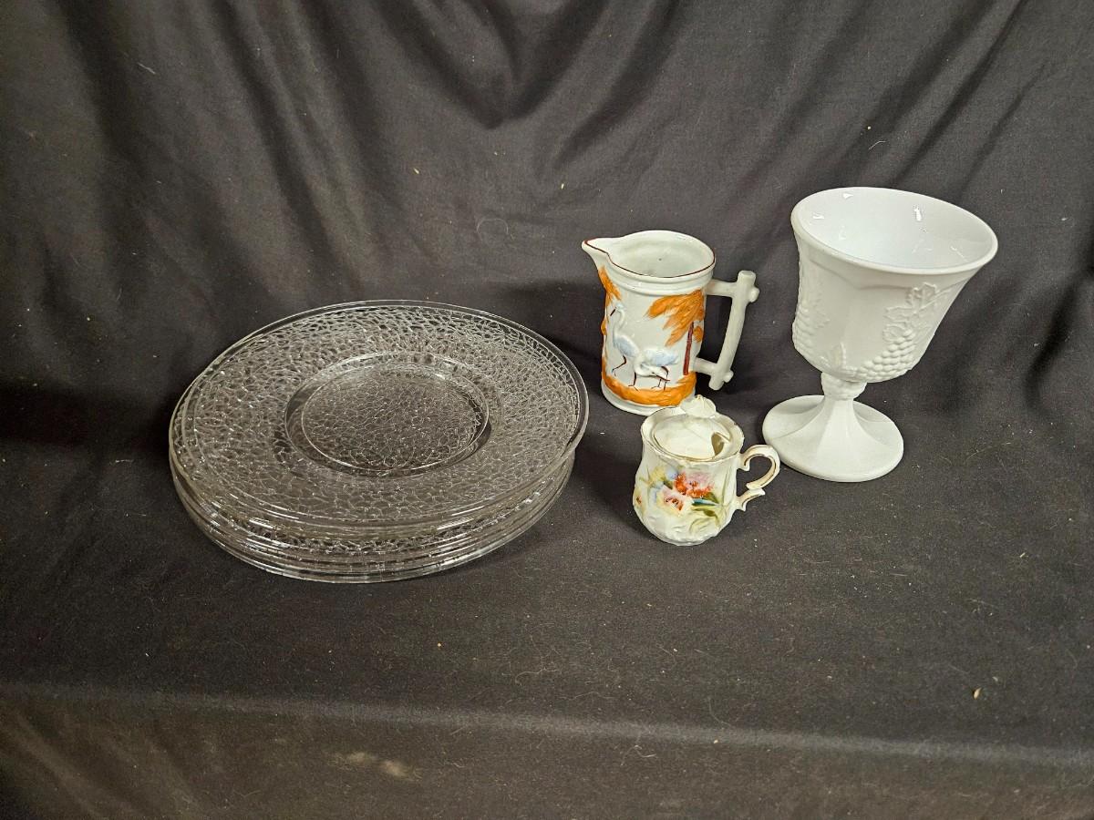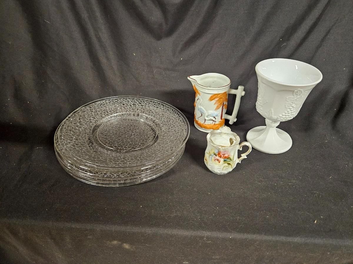 Lot of Misc. Antique Items Including Set of Clear Crackle Plates