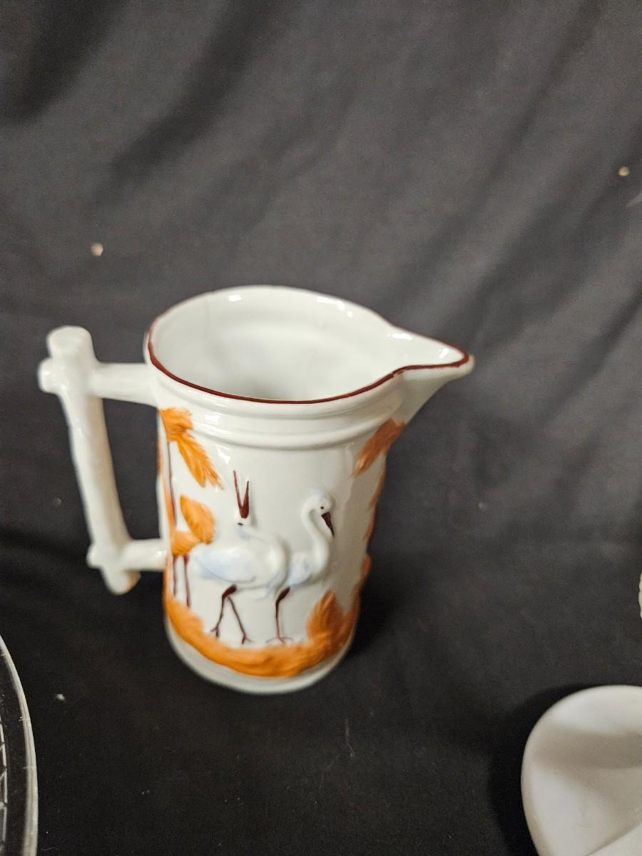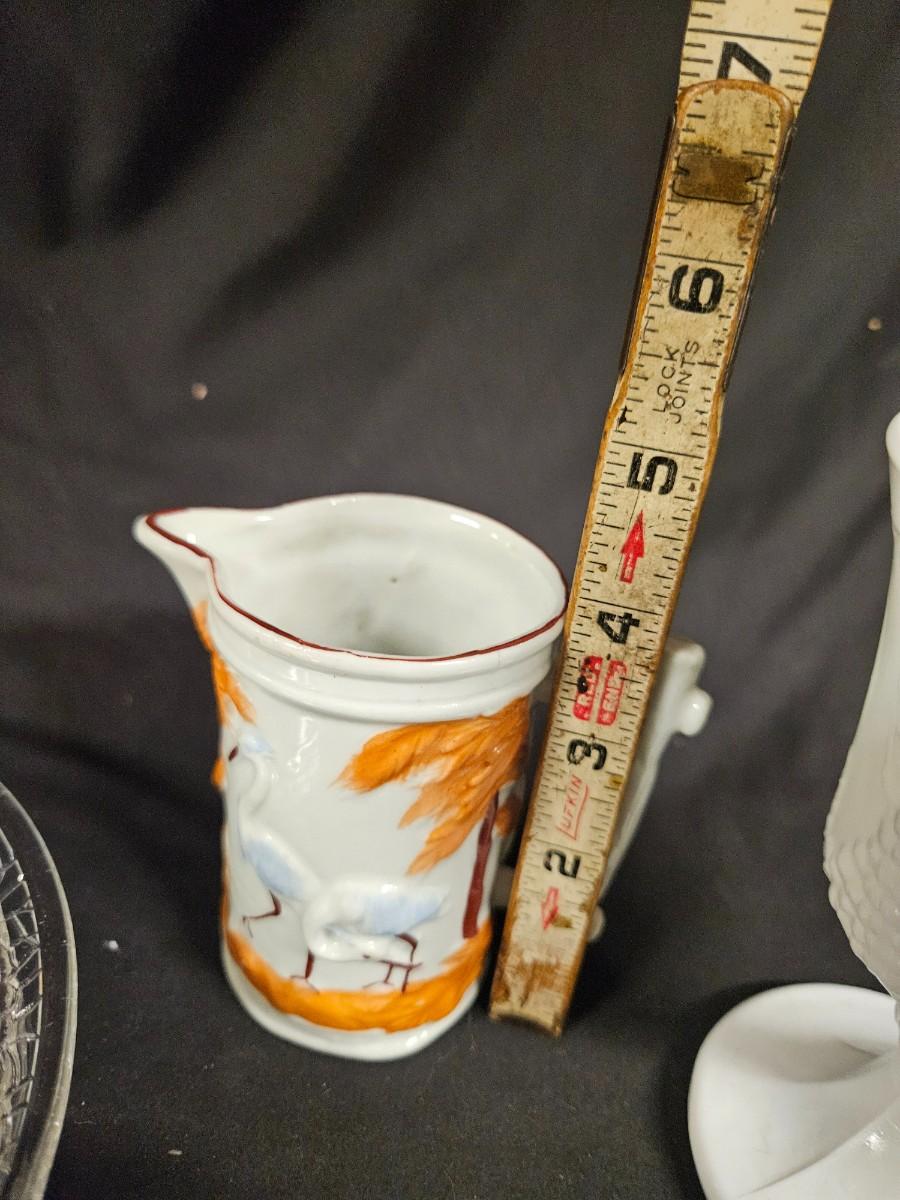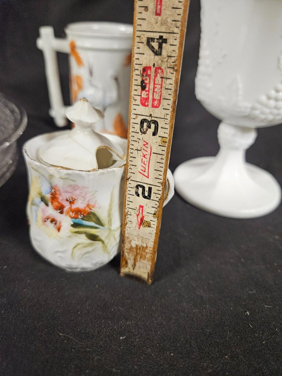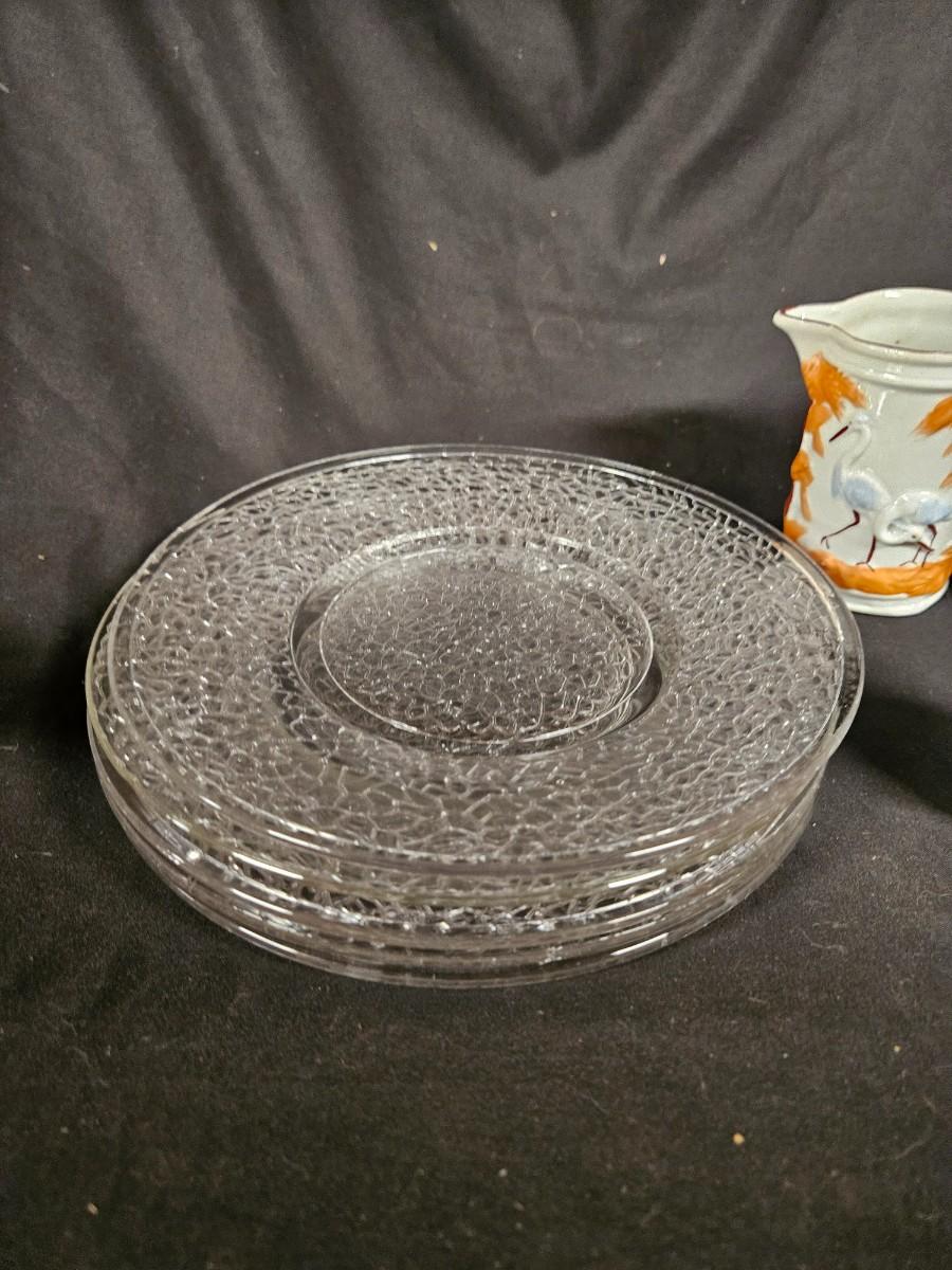 Lot of Misc. Antique Items Including Set of Clear Crackle Plates
