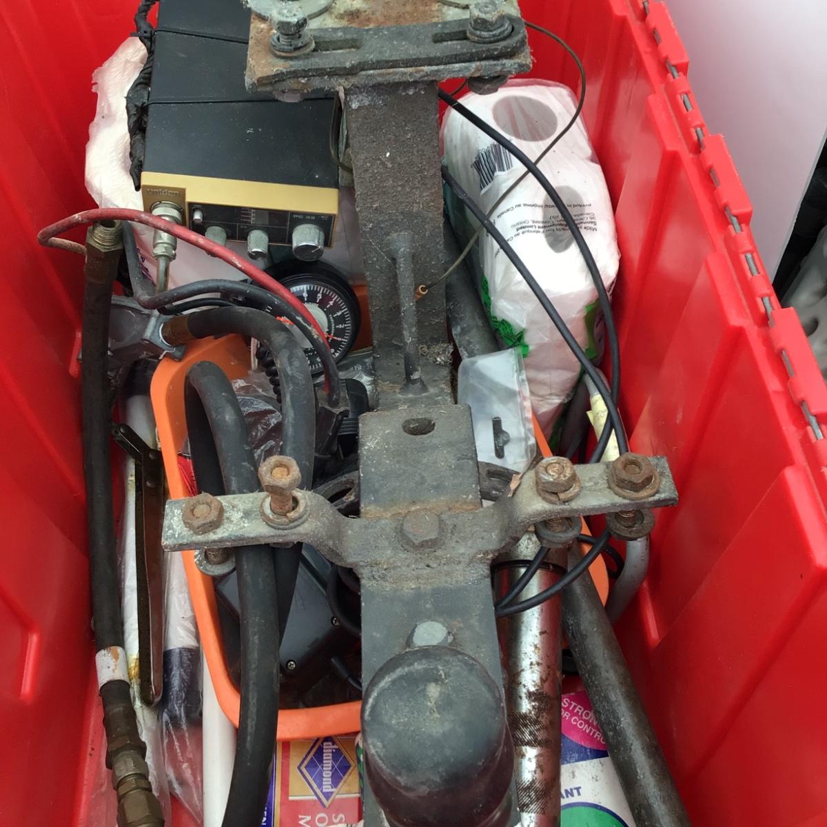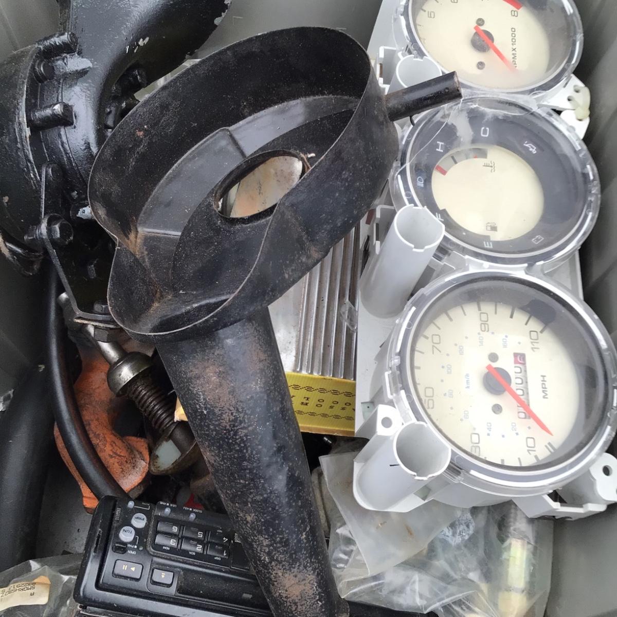 LOT of Misc Auto Parts, Accessories & Etc.. Vintage horn, vintage CB, trailer hitch, pair of window exterior vent visors, gauge cluster, etc.. The internal engine parts are all used and not tested. Make, model etc as to what type of car these parts go to is unknown..