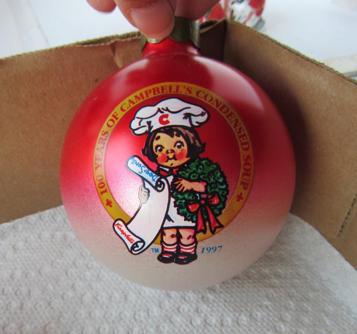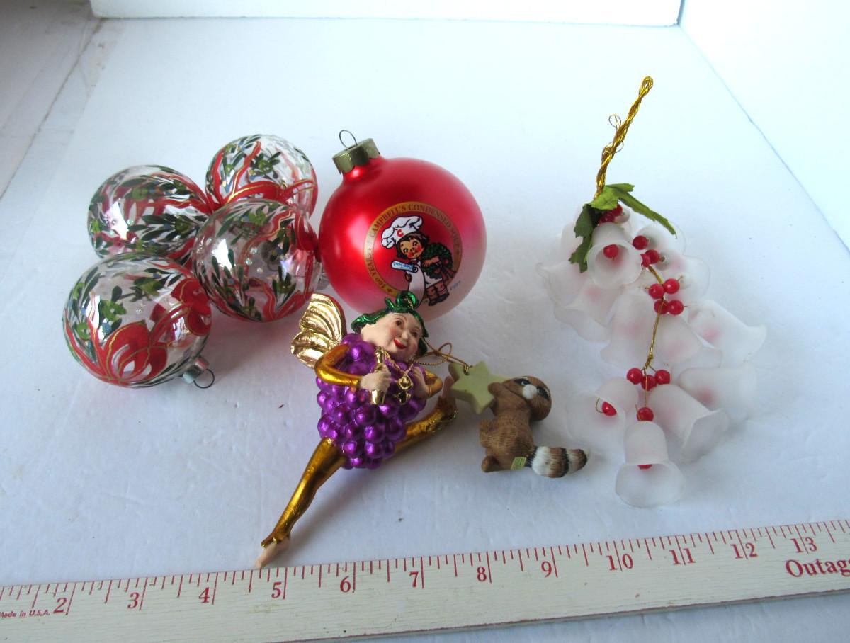 Nice Campbell's ball, painted balls, nice string of bells. Shipping is available at actual shipping cost plus $5.00 handling fee per box for supplies/labor. See our terms for details. All sales are final. Condition notes may not be all inclusive, we may miss some issues as most vintage items are not in mint condition and have some degree of wear, paint loss, etc, but we always try to note obvious damage.