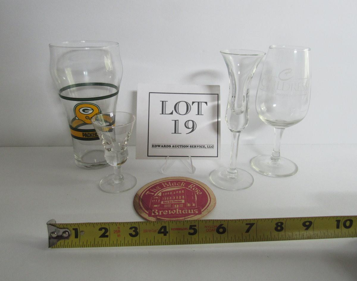 Lot of Misc Drinking Glasses, Packers, Childress, Coaster