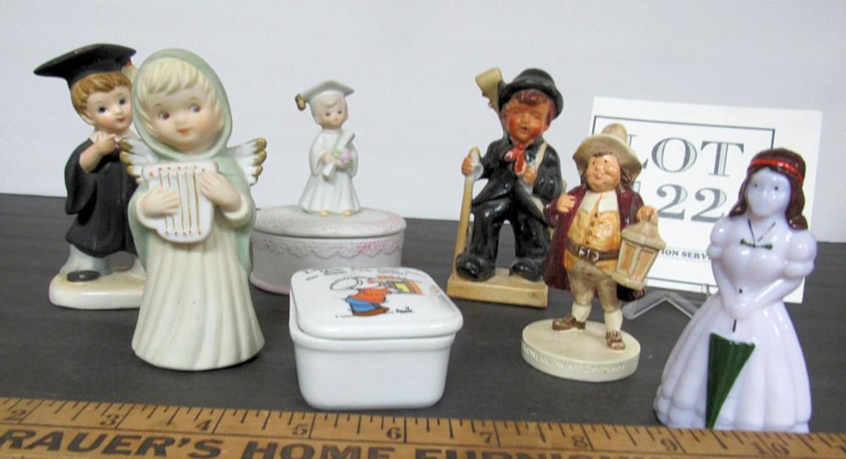 Lot of Misc Figurines and Dear God Trinket Box, Graduate Trinket Box