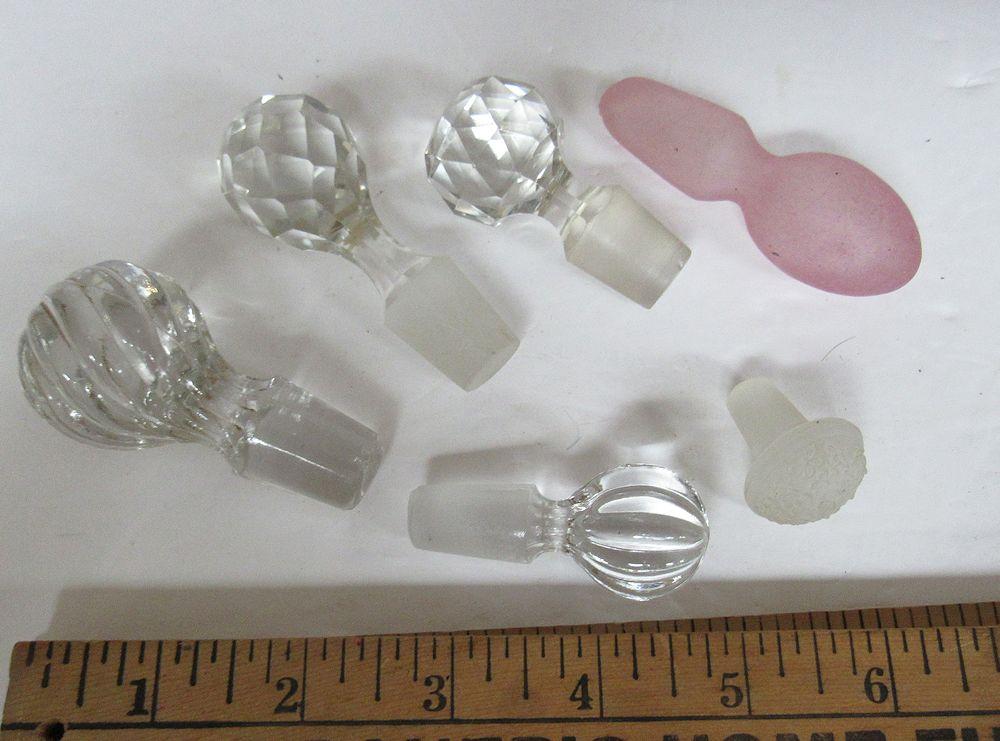 Lot of Misc Glass Stoppers for Cruets and a Small Perfume Topper