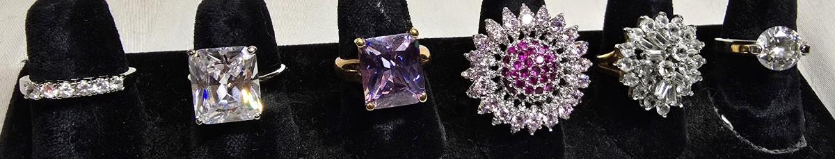 Lot of 6 costume jewlery rings. all size 6, not signed.