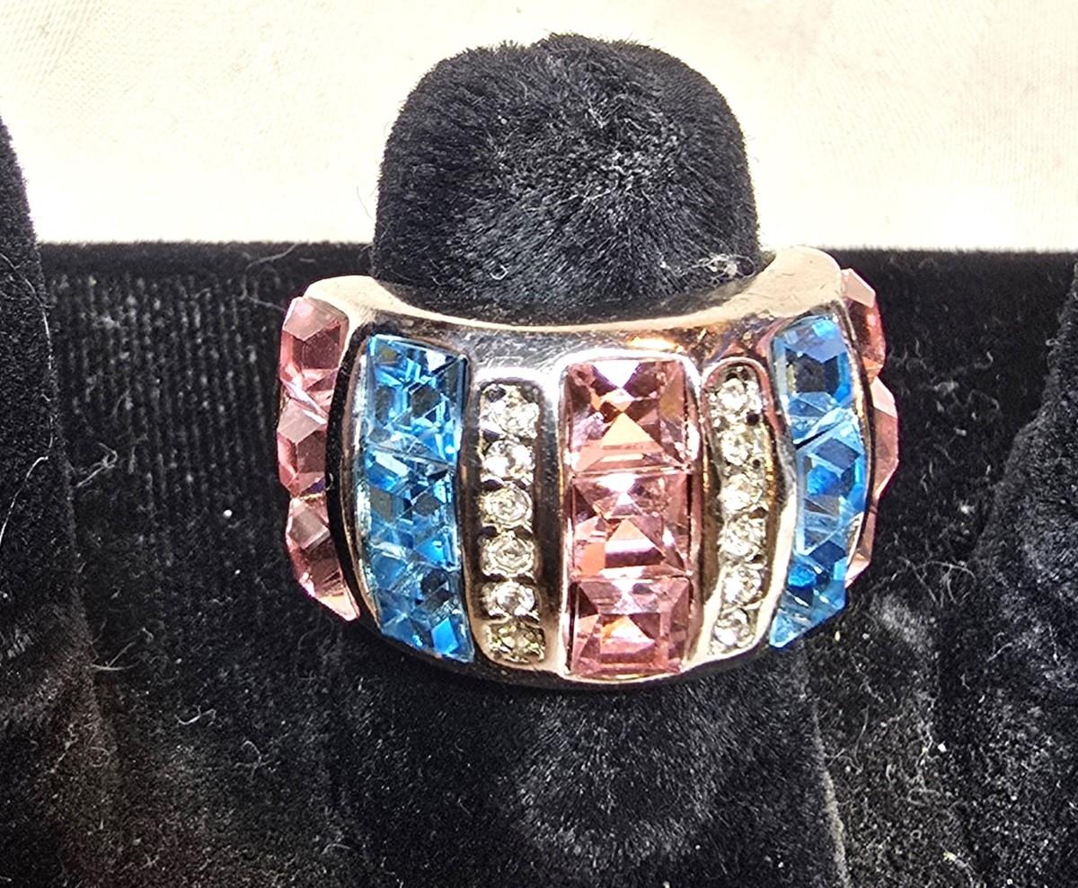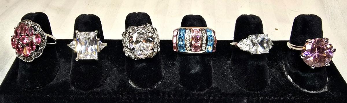 Lot of 6 costume jewlery rings. all size 6, not signed.