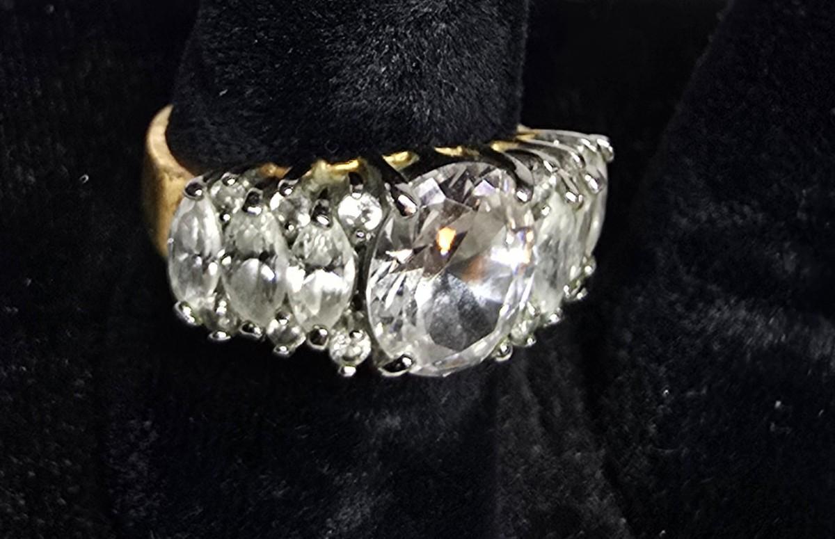 Lot of 6 costume jewlery rings. all size 6, not signed.