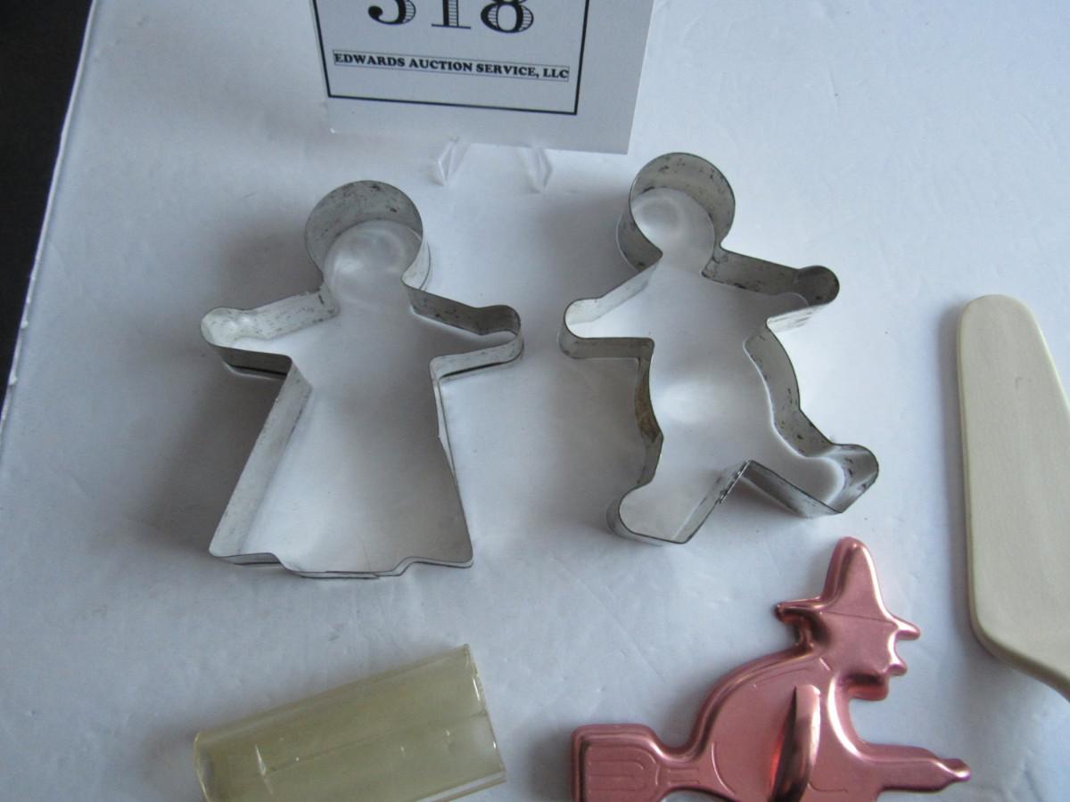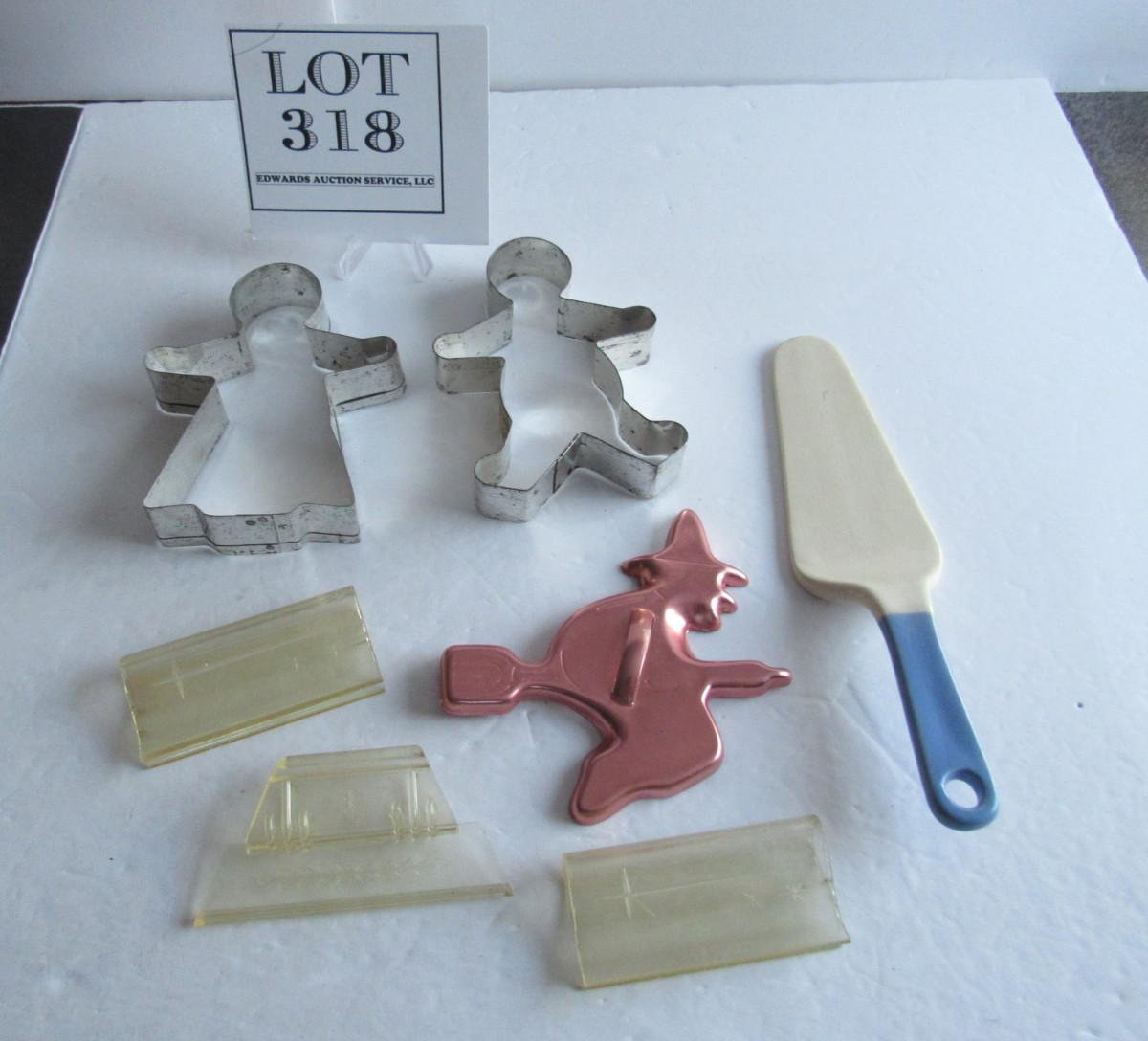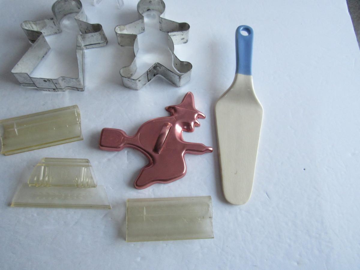 Lot of Misc Old Kitchenware, MCM Clips, Large Size Cutters, Pottery Pie Server