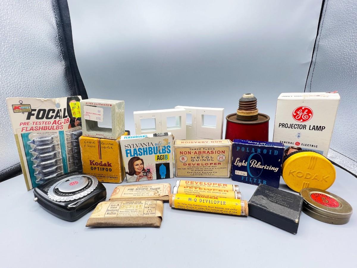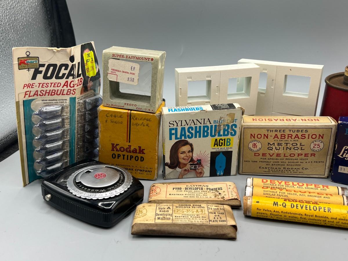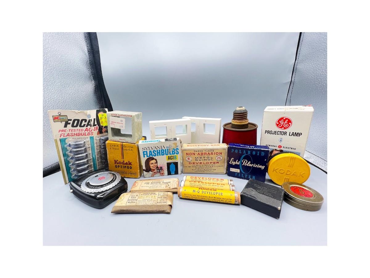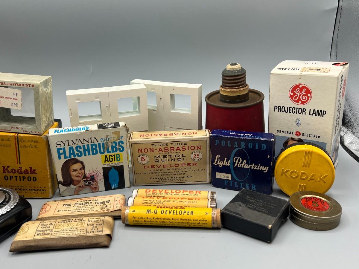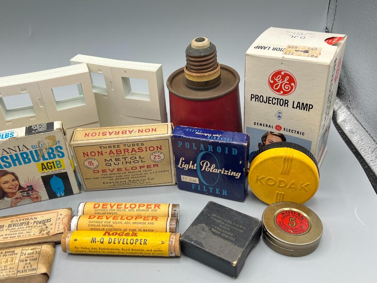 Lot of Misc Photography Supplies Accessories Flash Bulbs, Kodak Developer, Filters & More