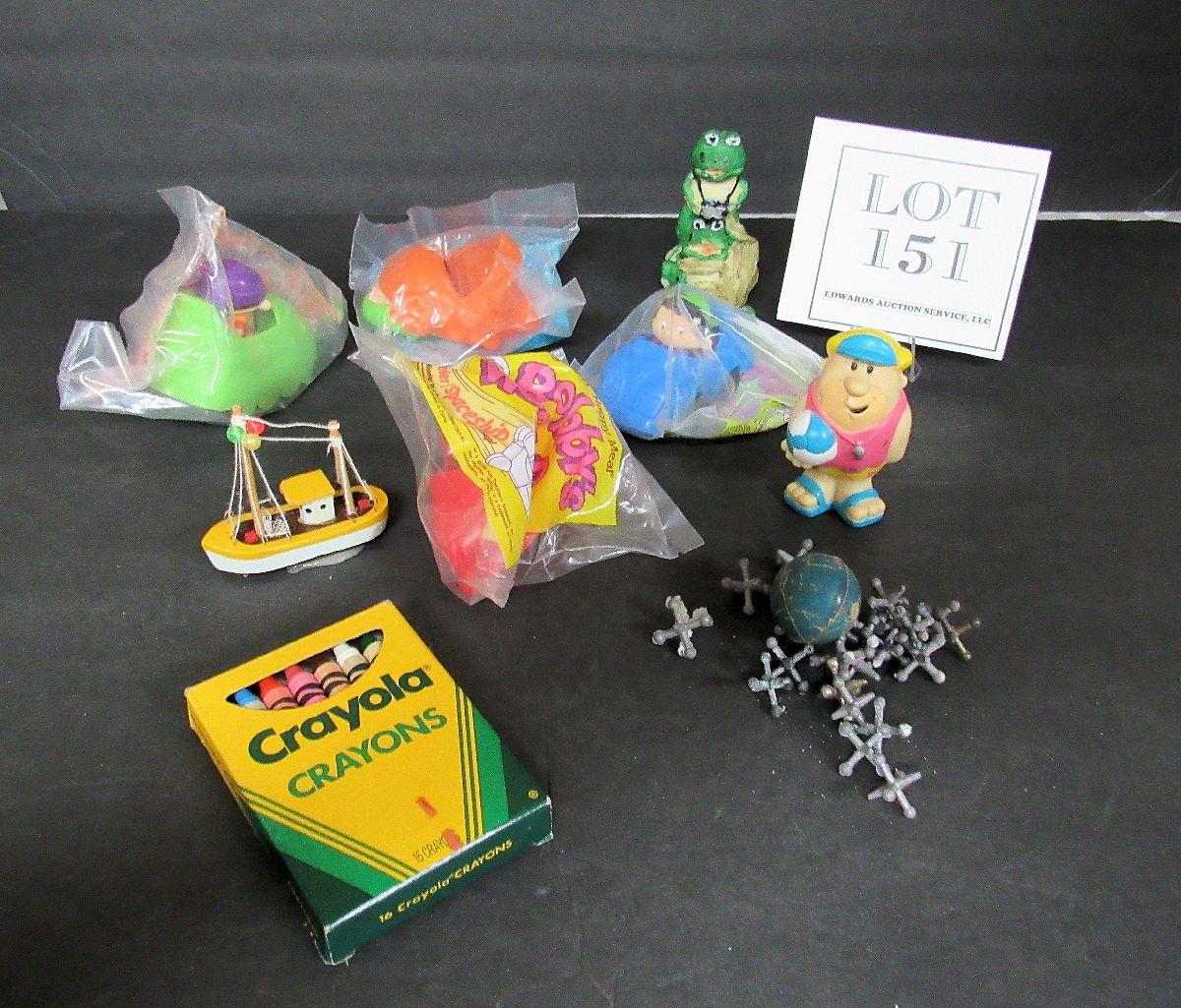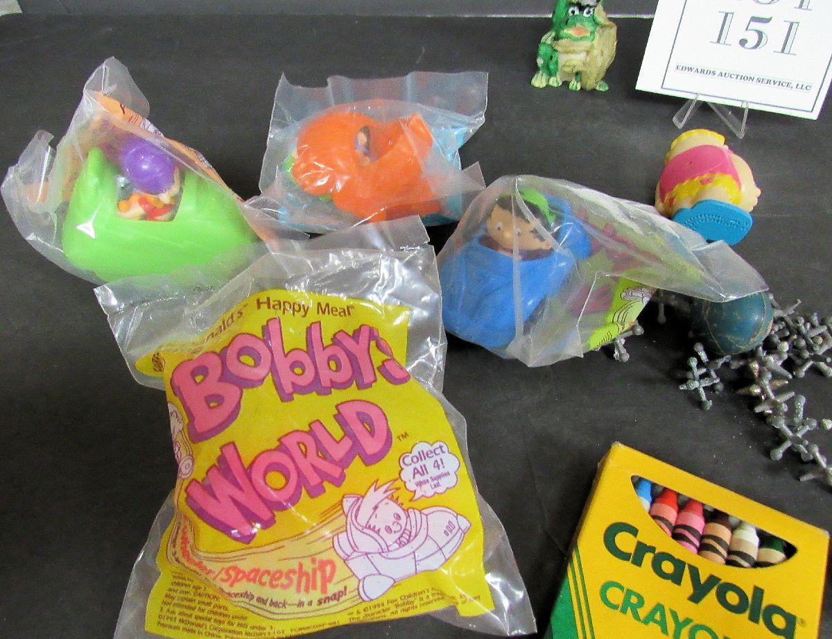 Some still in package, some used but ok. Crayons slightly used. Shipping is available at shipping cost plus $5.00 handling fee on one box, $10.00 handling fee on two boxes, $15.00 handling fee on 3 boxes. Helps cover shipping materials and labor cost.