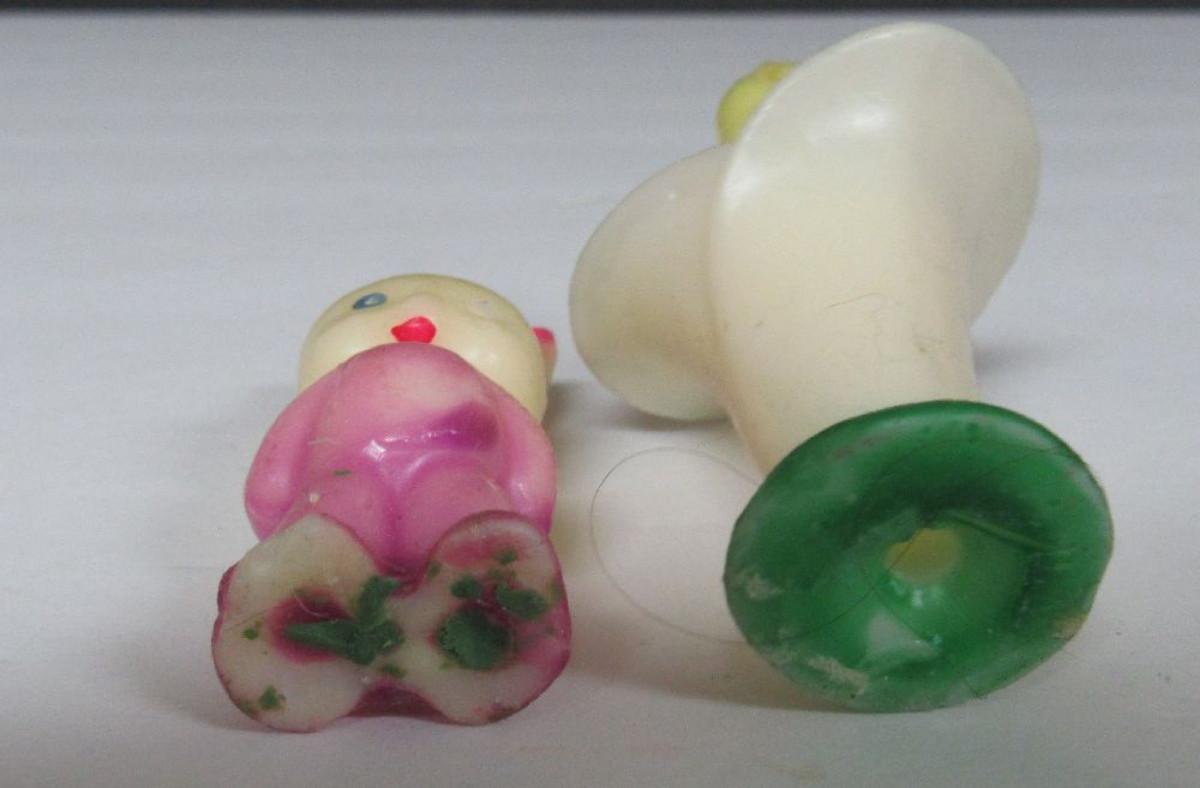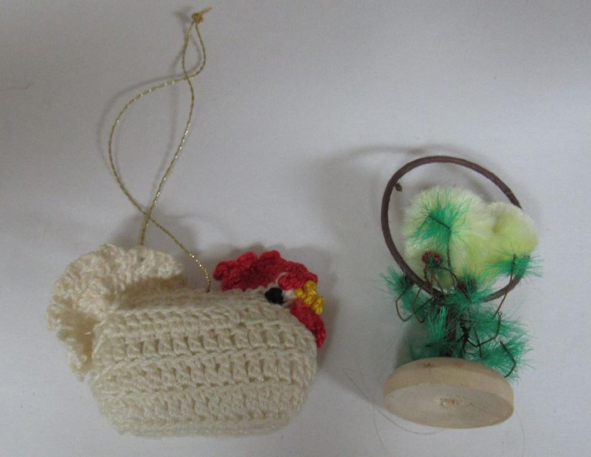 Candles don't have bottom cardboards, hard plastic rabbit has melted something on back of his head that doesn't wash off. The tiny chick is chenille on wood. The chicken figurine is Enesco 1995 Happy Henpecked. Shipping is available at shipping cost plus $5.00 handling fee on one box, $10.00 handling fee on two boxes, $15.00 handling fee on 3 boxes. Helps cover shipping materials and labor cost.