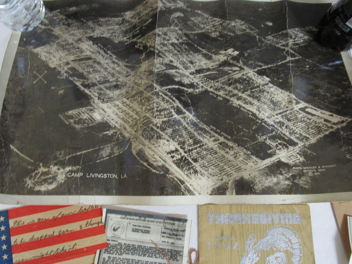 Lot of Misc Vintage Military Ephemera, Memorabilia, Camp Livingston, Navy Thanksgiving Menu, More