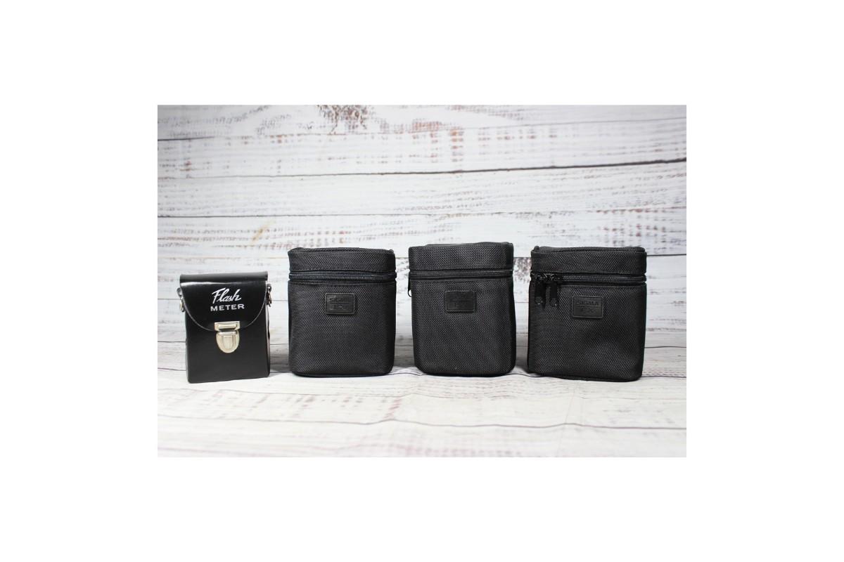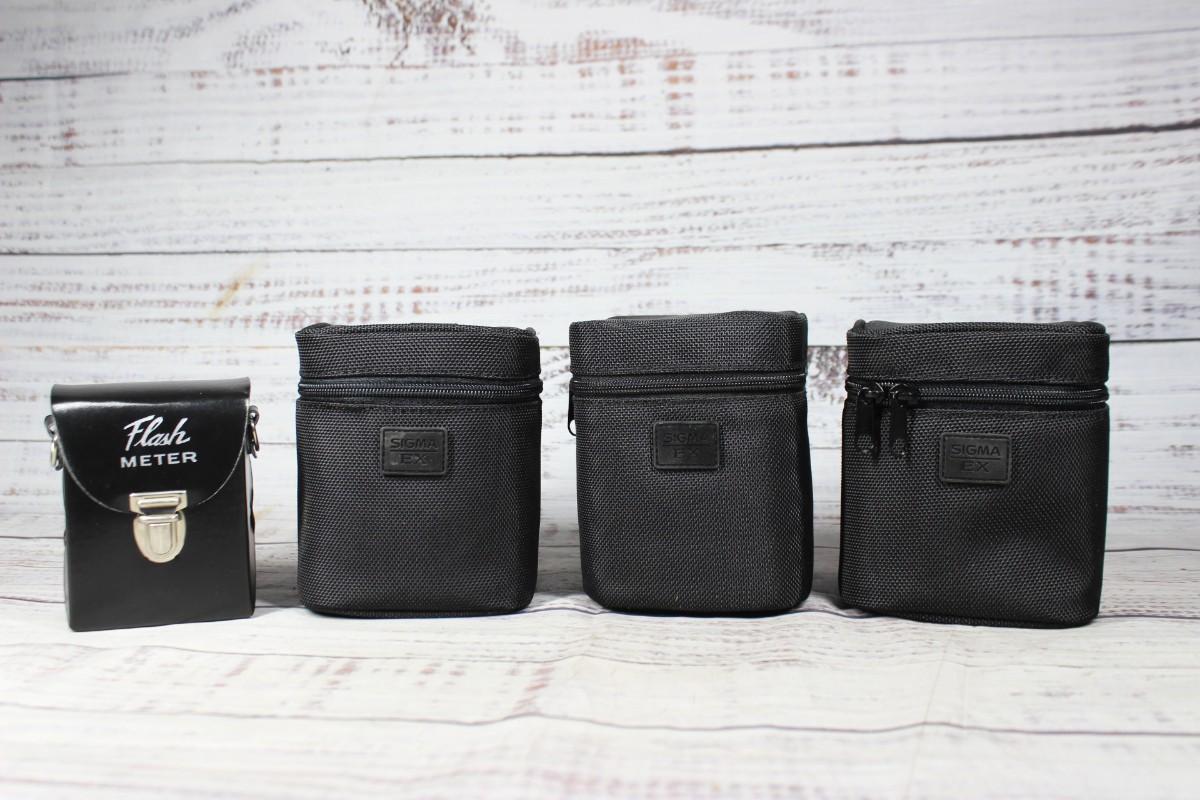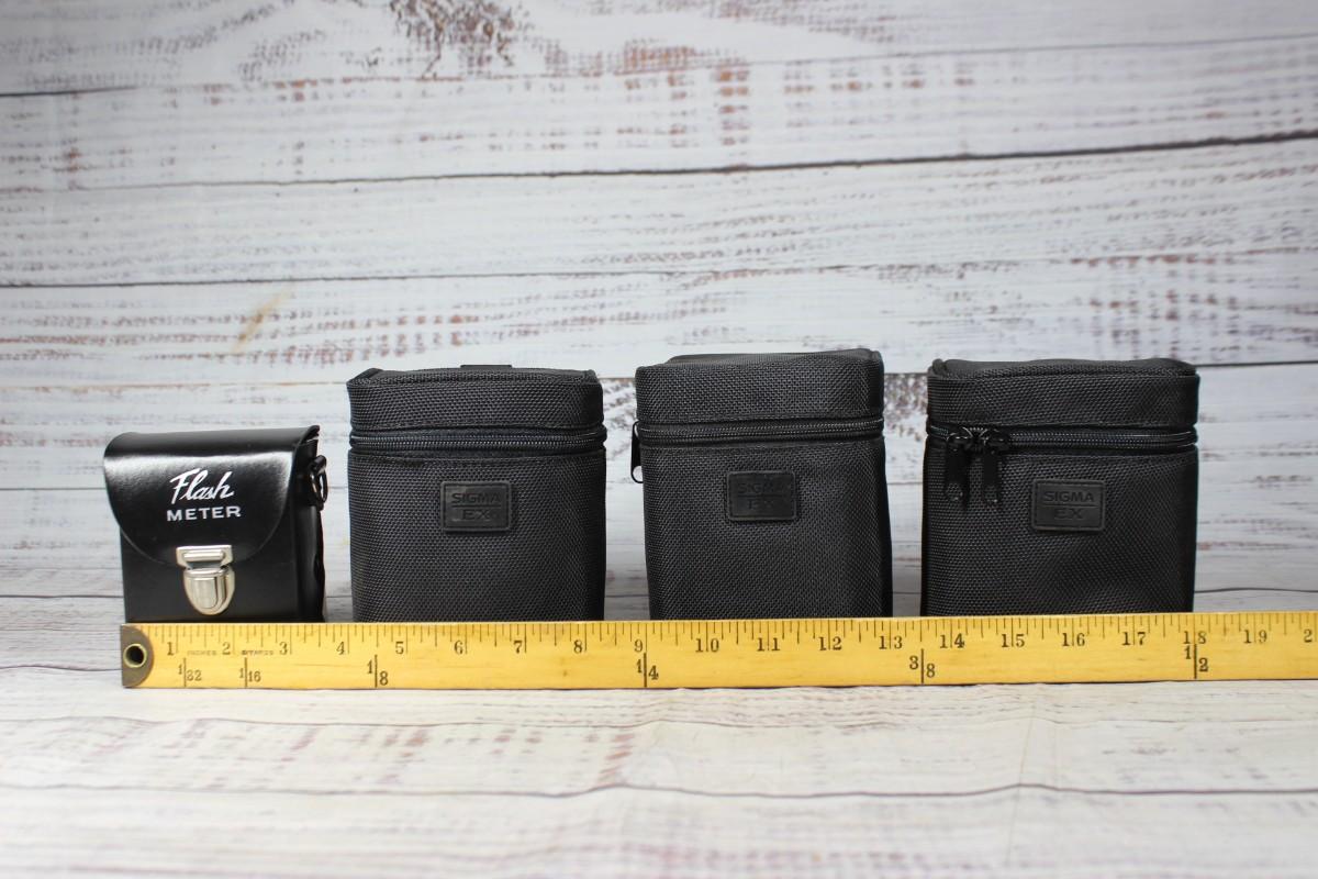 Lot of Miscellaneous Camera Lens and Flash Meter Carrying Felt & Vinyl Cases, there is no signincant damage to the cases and is in good usable condition. Does not come with the lenses, check pictures for more details and for sizing.