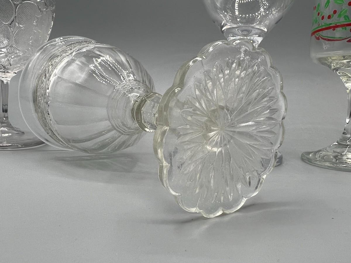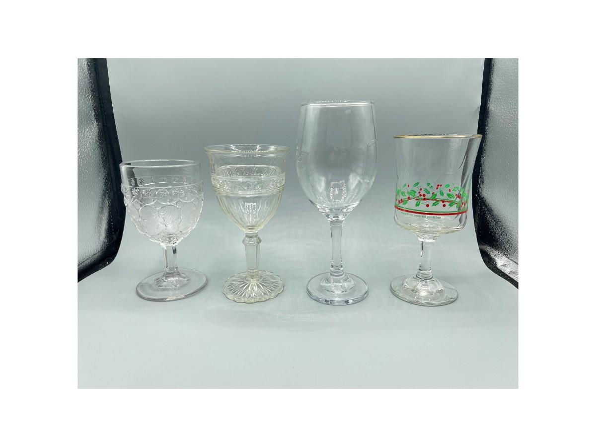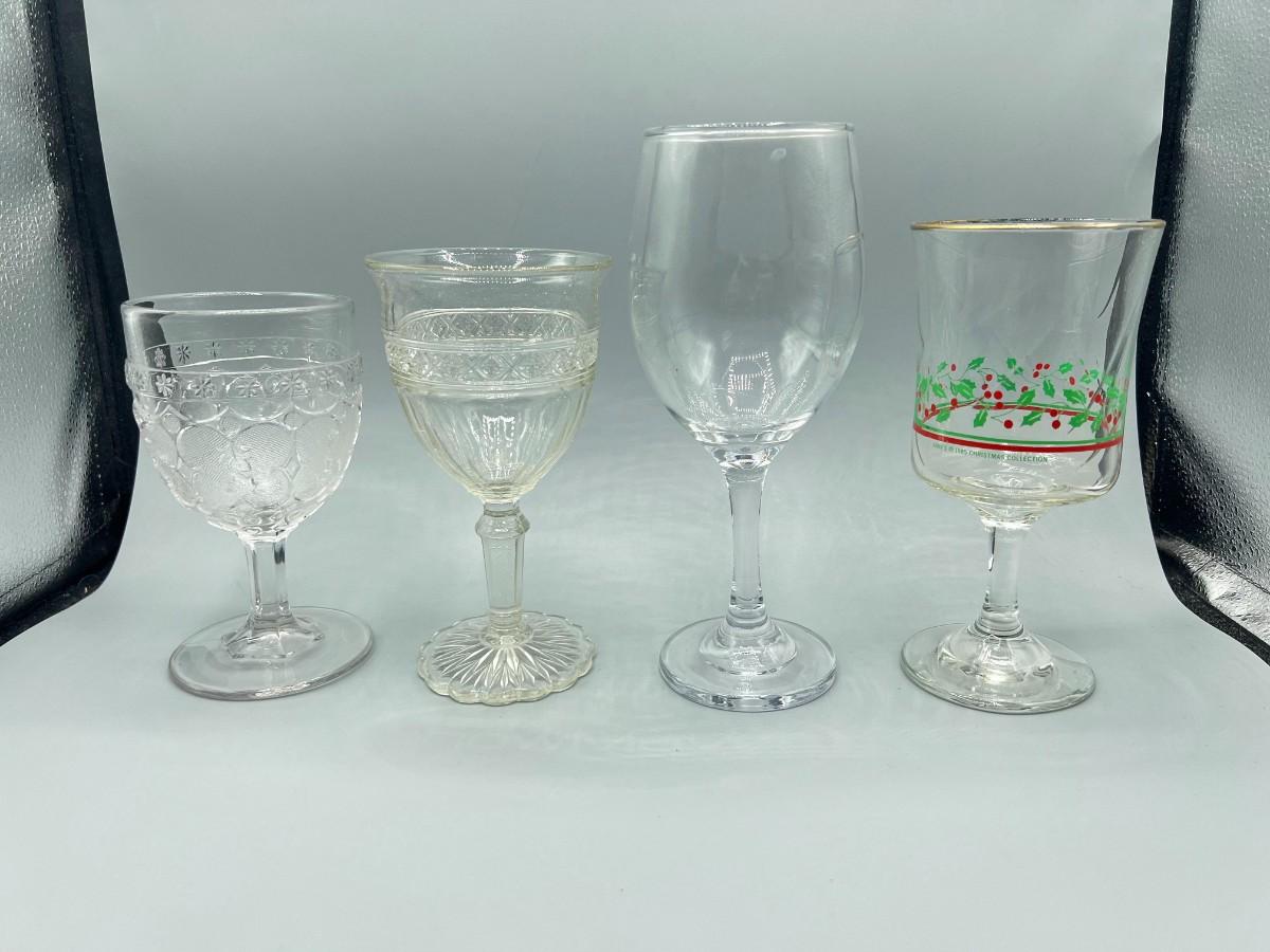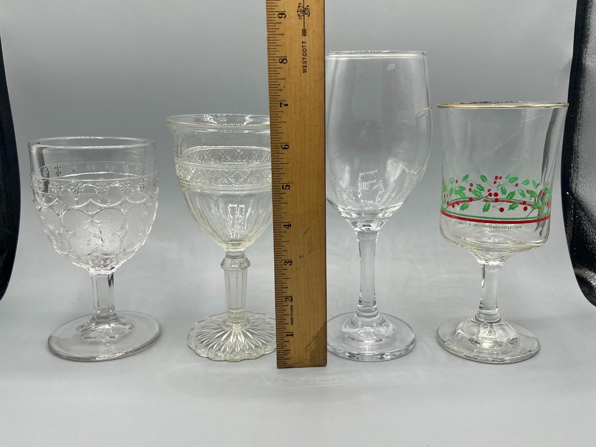 Lot of Miscellaneous Glass Stemmed Drinking Glasses, Goblets, Christmas Glasses, & More