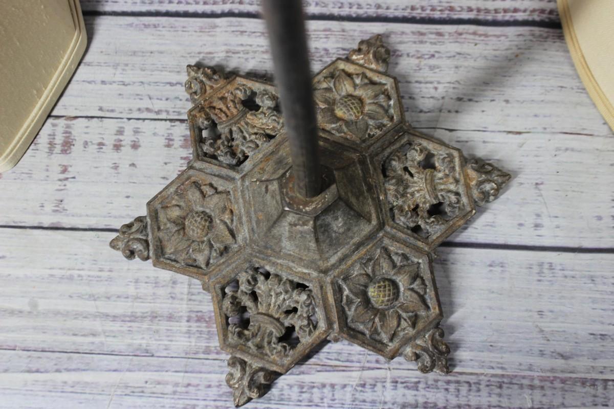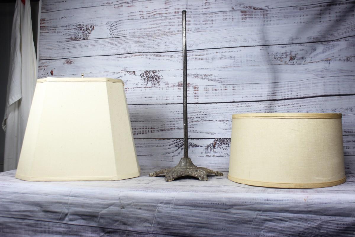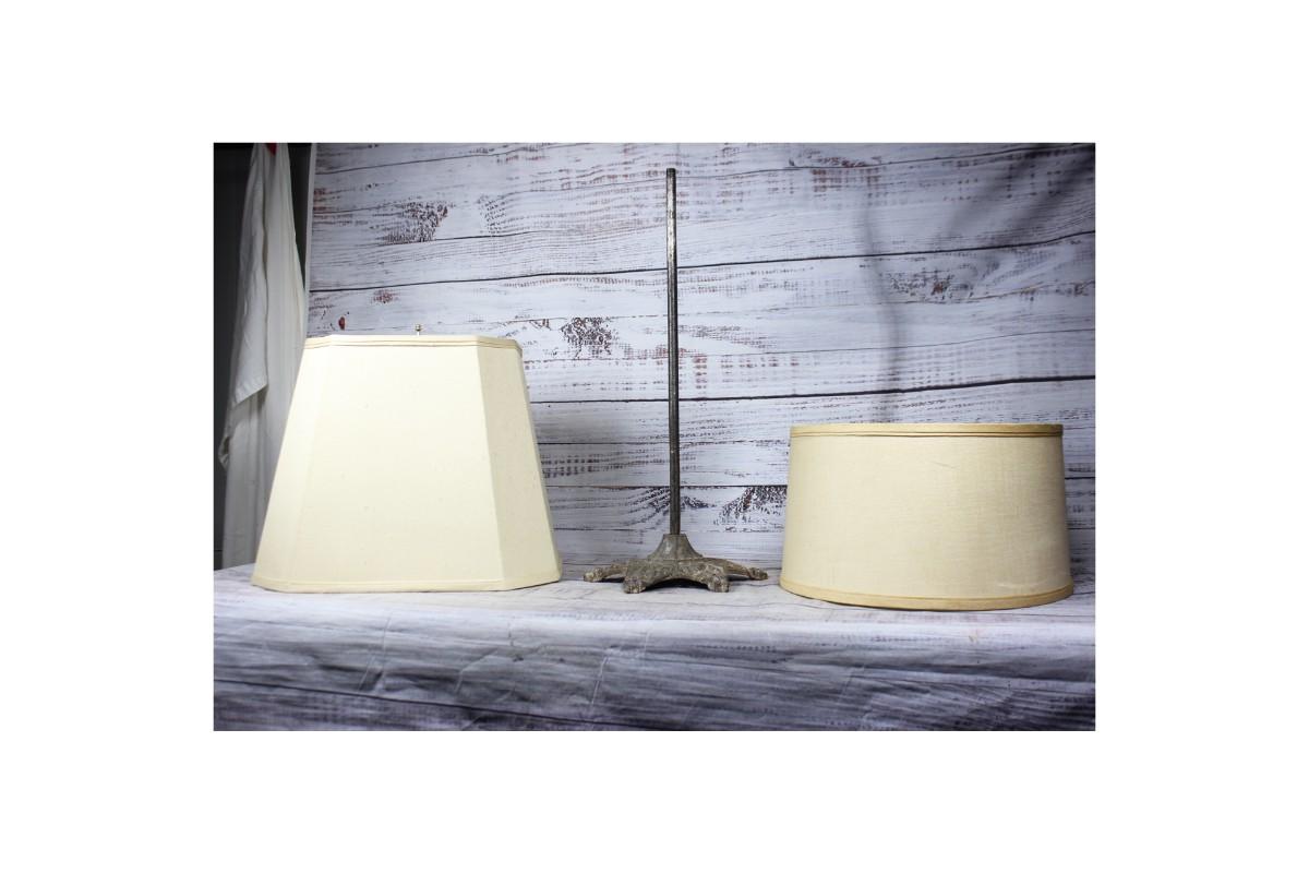 Lot of Miscellaneous Lamp Parts Lamp Shades & Vintage Metal Stand, there is no significant damage to the pieces and is in overall fair condition. Check pictures for more details and for sizing