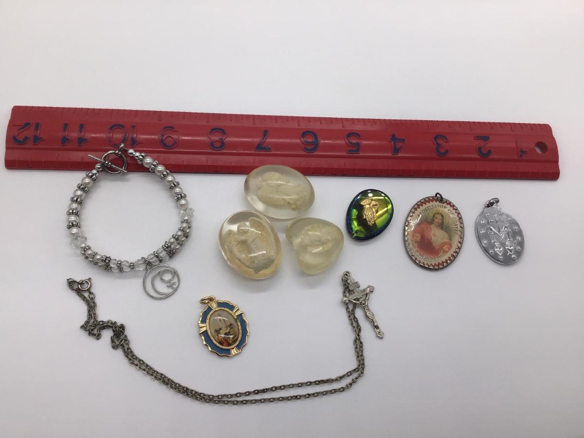 Lot Of Miscellaneous Religious Pendant Stones Ect