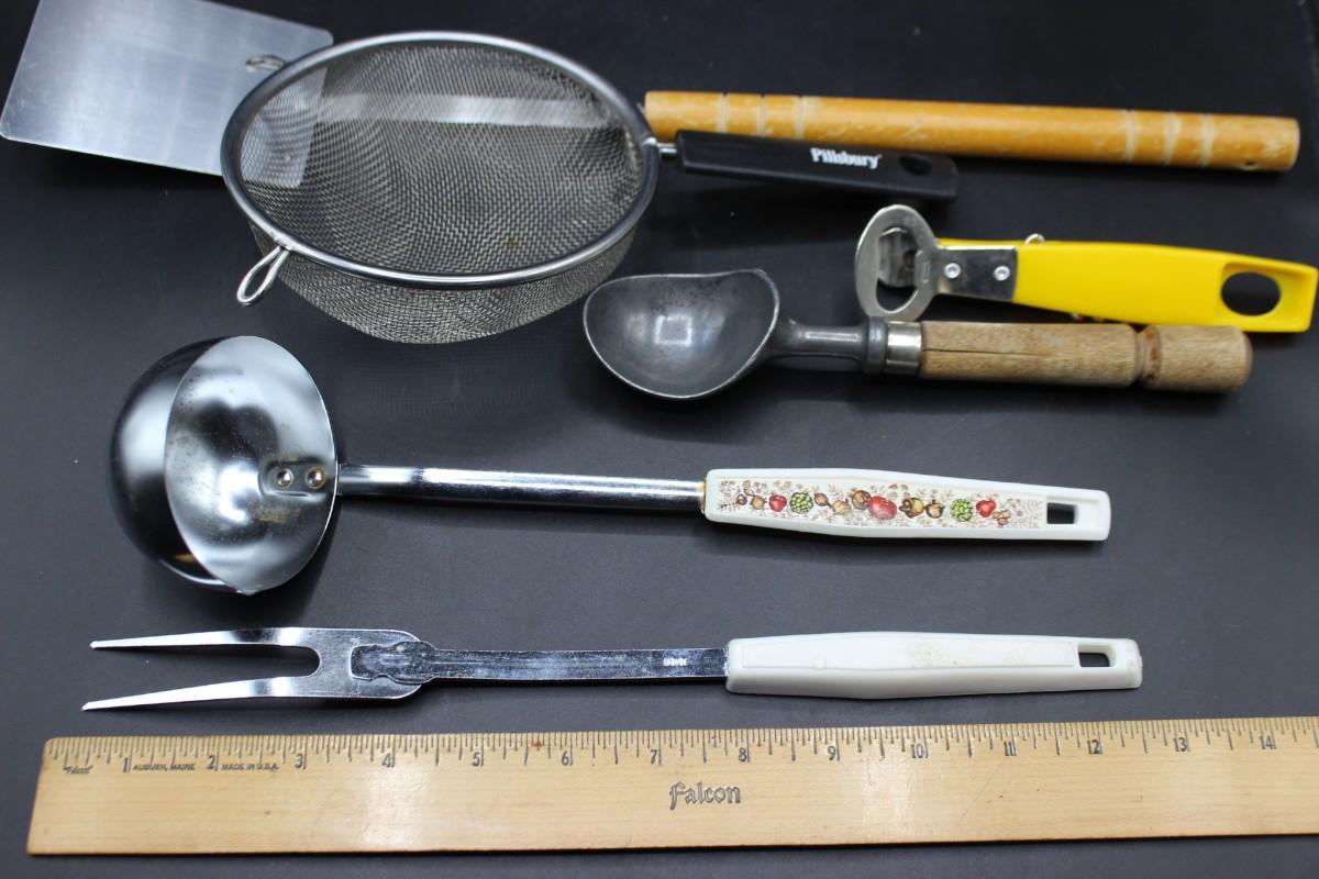 Lot of Miscellaneous Retro Kitchen Utensils, there are no significant damage to any of the pieces and is in good vintage condition. Check pictures for more details and for sizing.