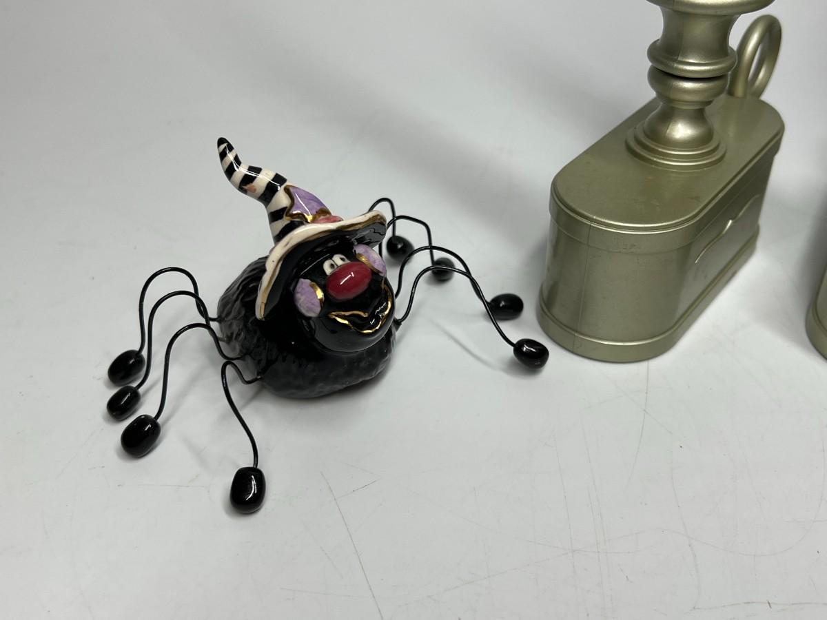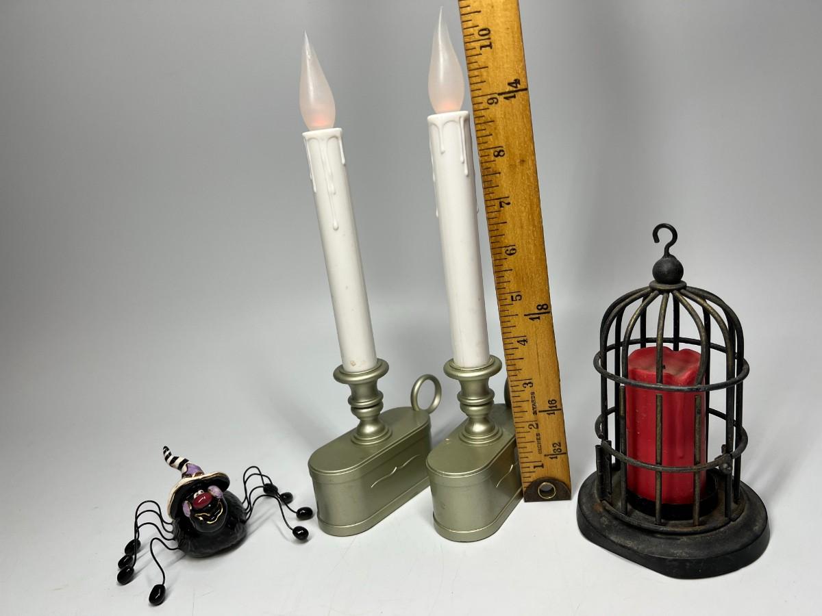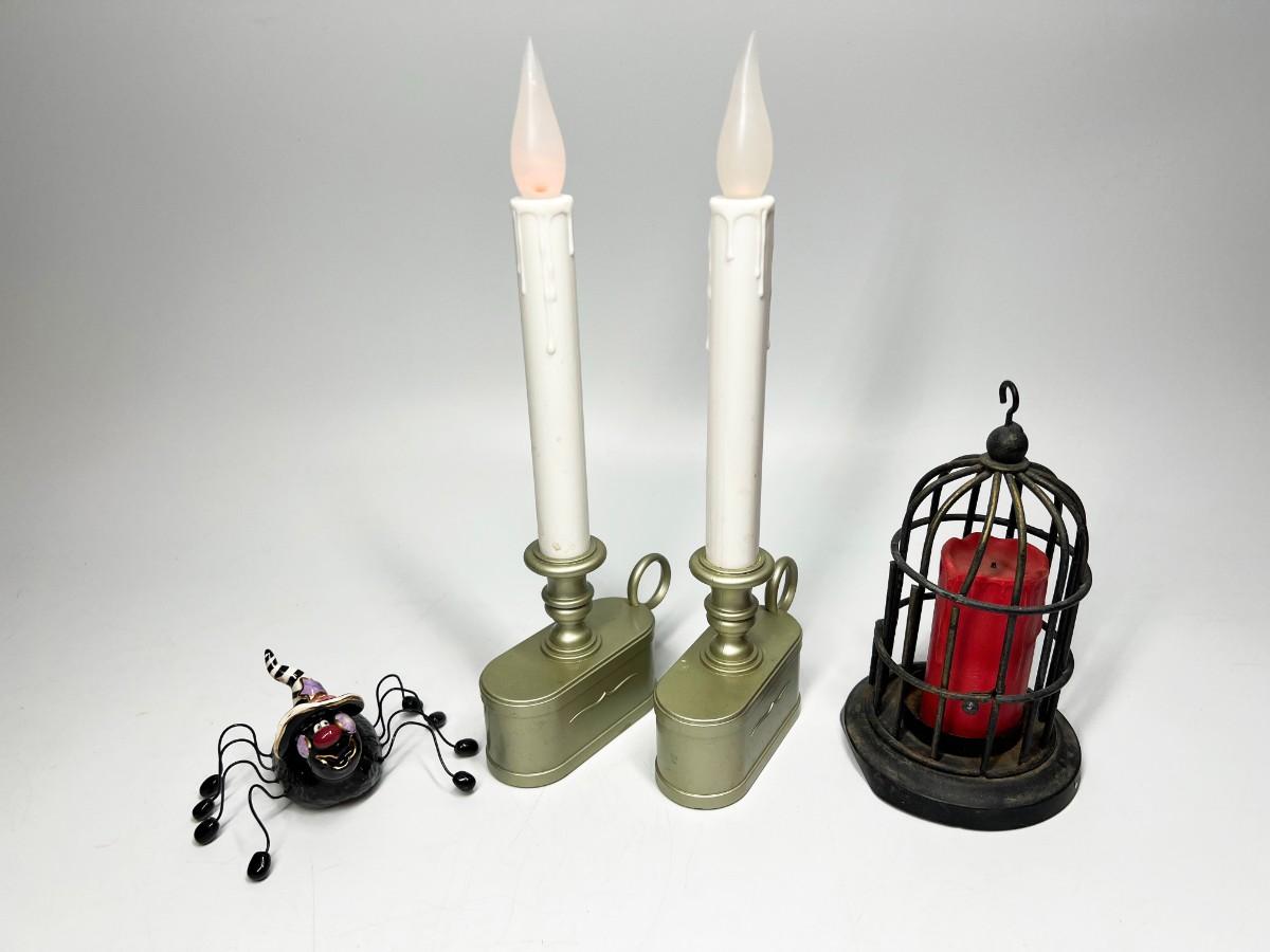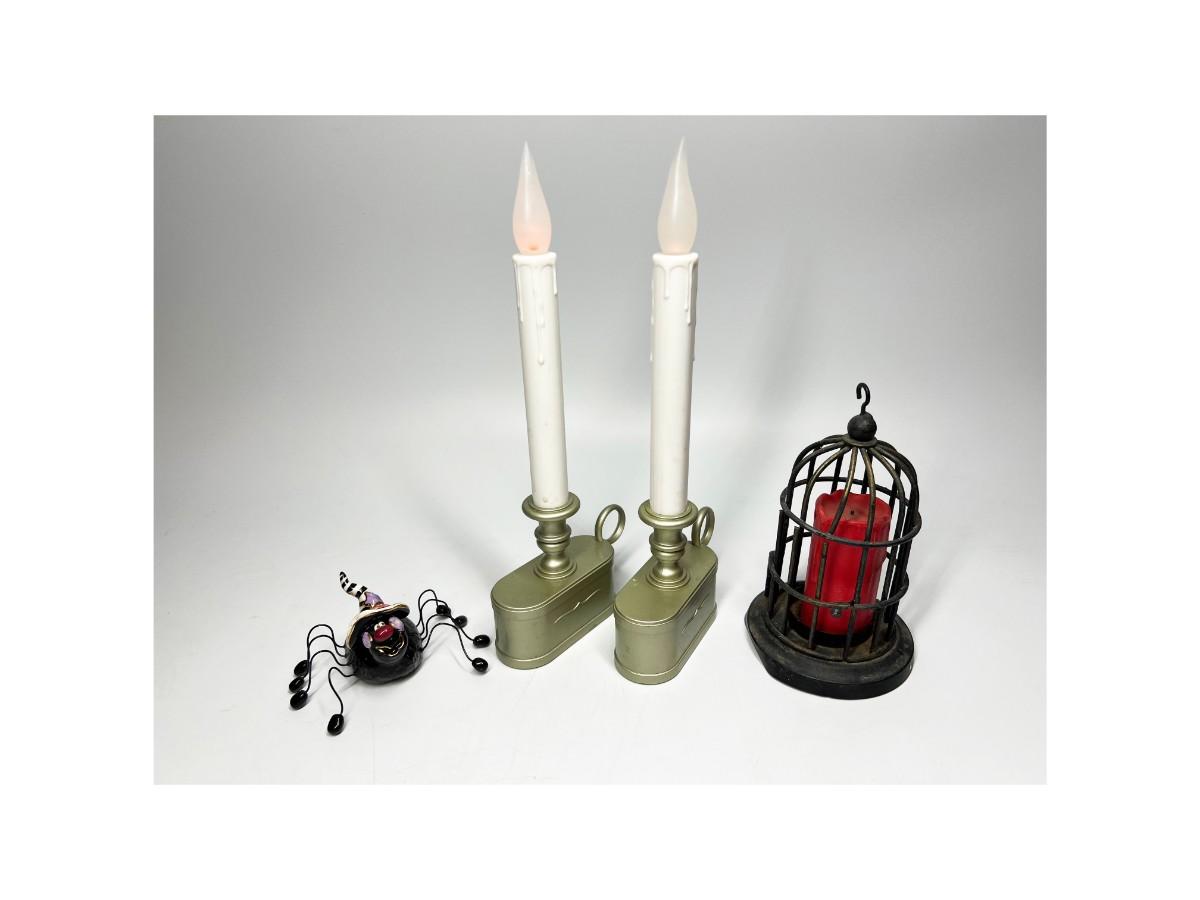 Lot of Miscellaneous Spooky Halloween Decor Cage Candle Holder, Electric Candles & More