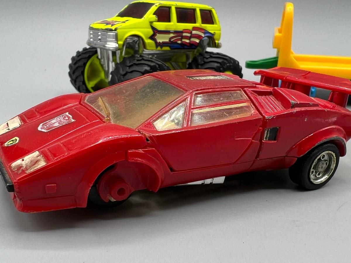 Lot of Miscellaneous Toy Cars Transformer Sports Car Monster Truck & More, there is some light wear, but there is no significant damage and is in overall fair condition. Check pictures for more details.
