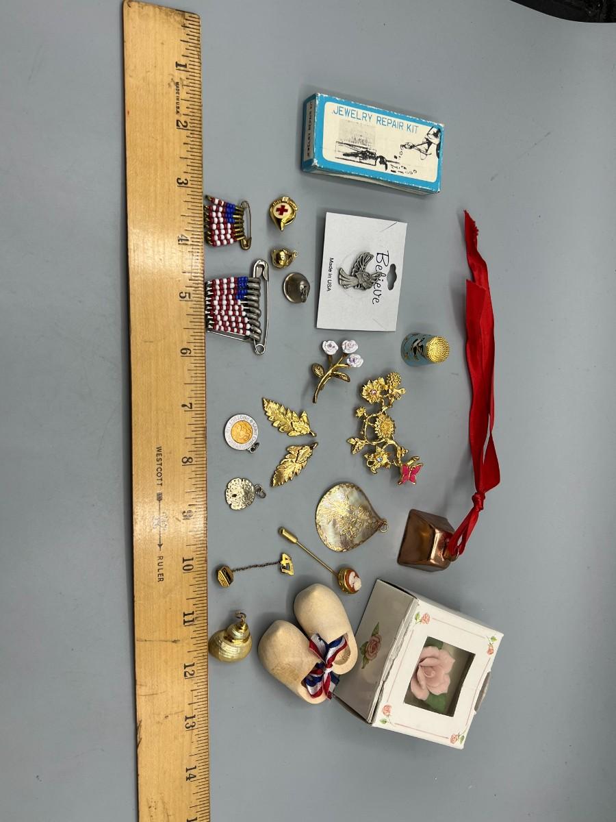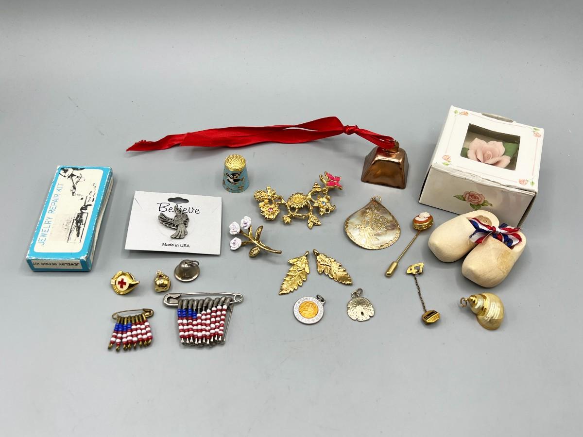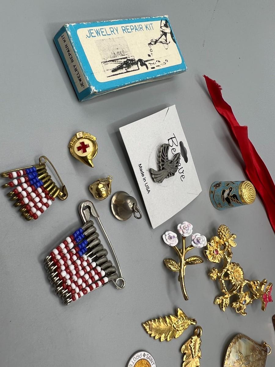 Lot of Miscellaneous Trinkets Brooches, Pins, Charms & More