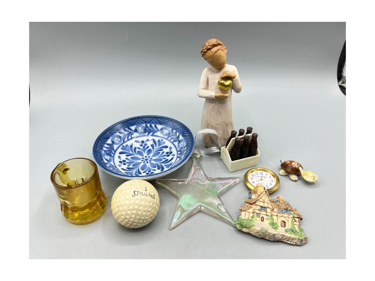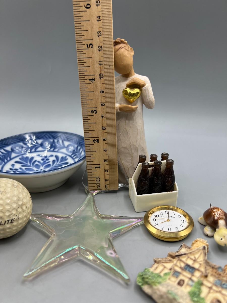 Lot of Miscellaneous Trinkets Willow Tree Angel Figurine, Oriental Ceramic Bowl, Retro Shot Glass & More