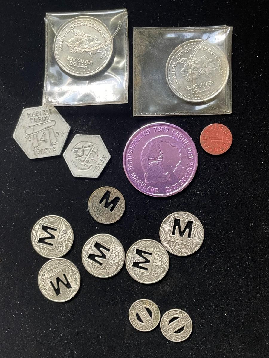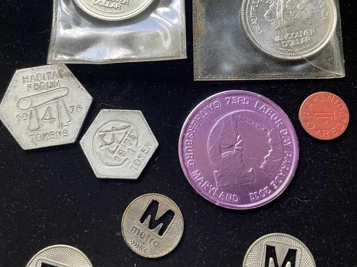 Includes DC Metro tokens and two UN Conference on Human Settlements coins.
