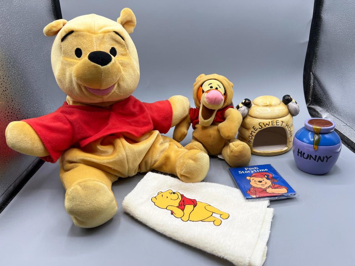 Lot of Miscellaneous Winnie the Pooh Hand Towel, Collectible Plushies, & More