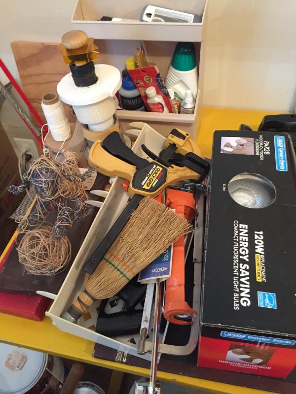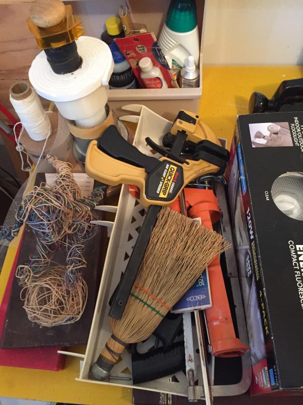 Includes 120 W Par 30 Floodlight bulbs, various tapes, clamps, culk gun, etc.